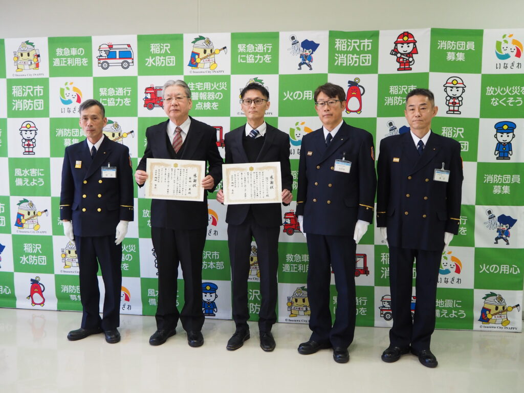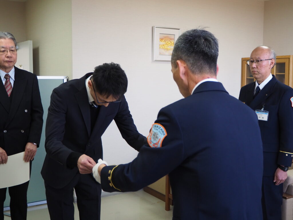 稲沢市消防本部にて行われた感謝状贈呈式では、岡田消防長より「多数の人が集まる現場では傍観者になりがちだが、今回はお客様とスタッフが一体となり、迅速な対応によって尊い命が救われた。この経験をぜひ周囲の方々にも伝えてほしい」とのお言葉をいただきました。