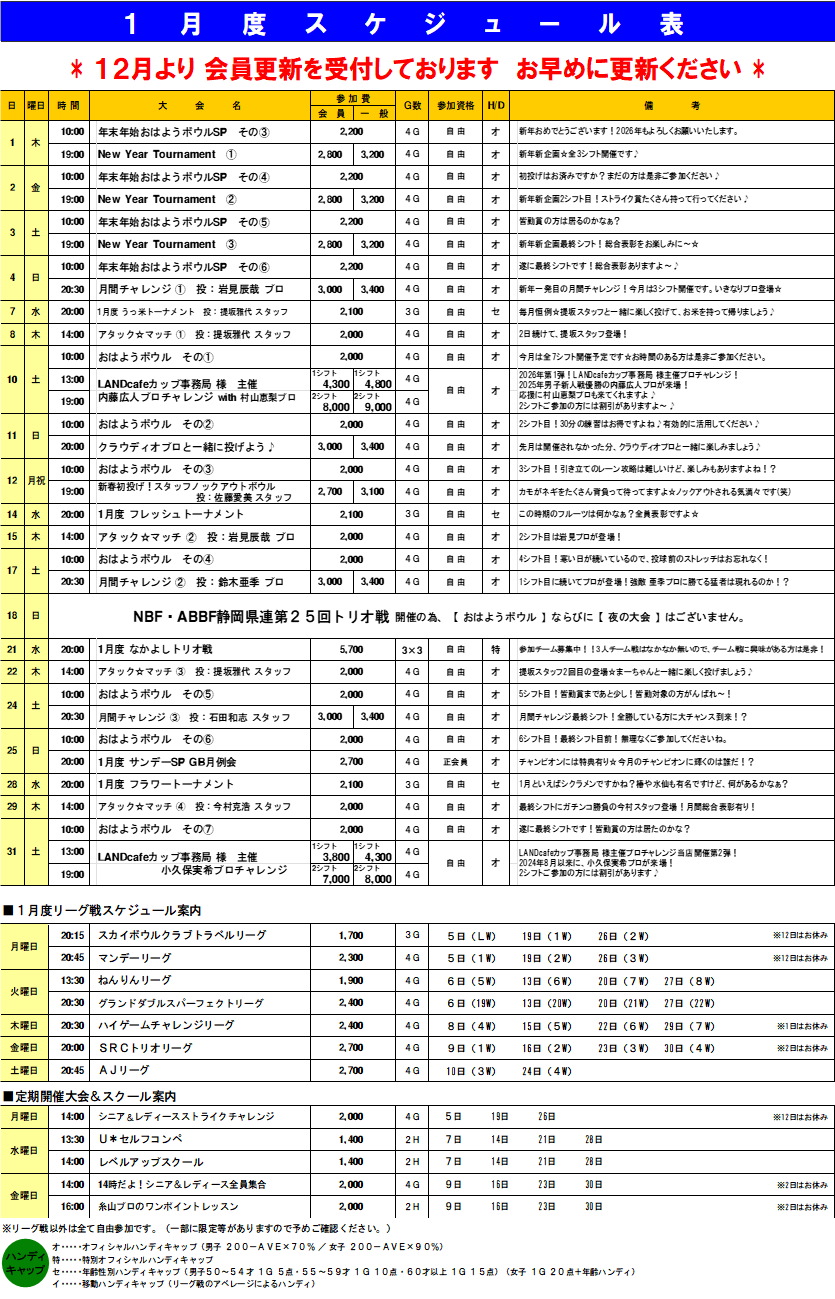 2026年1月度スケジュール