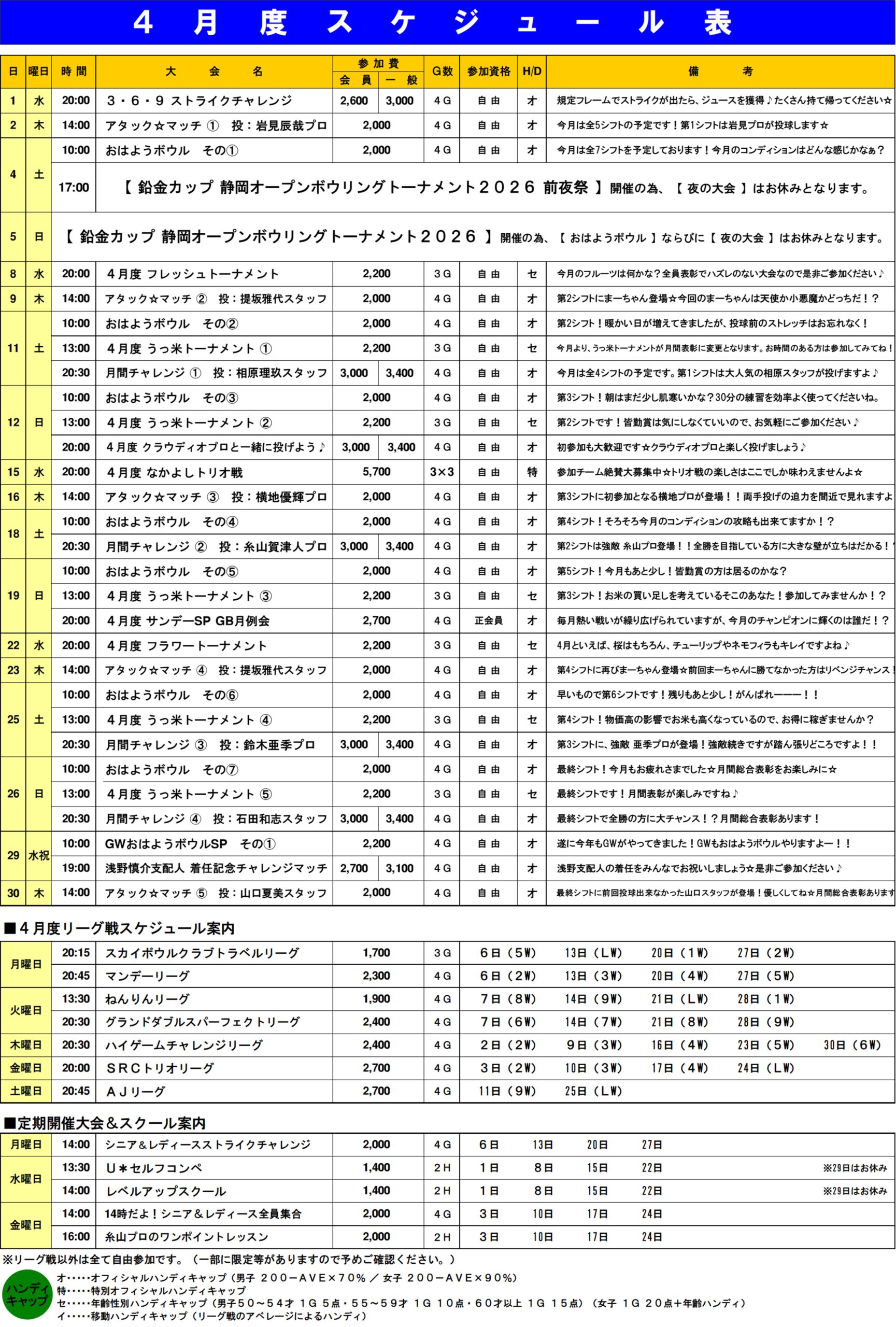 4月度スケジュール表