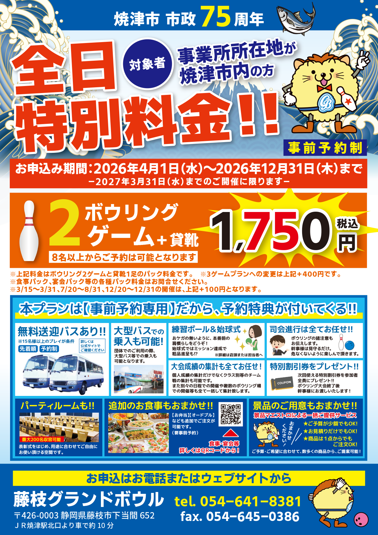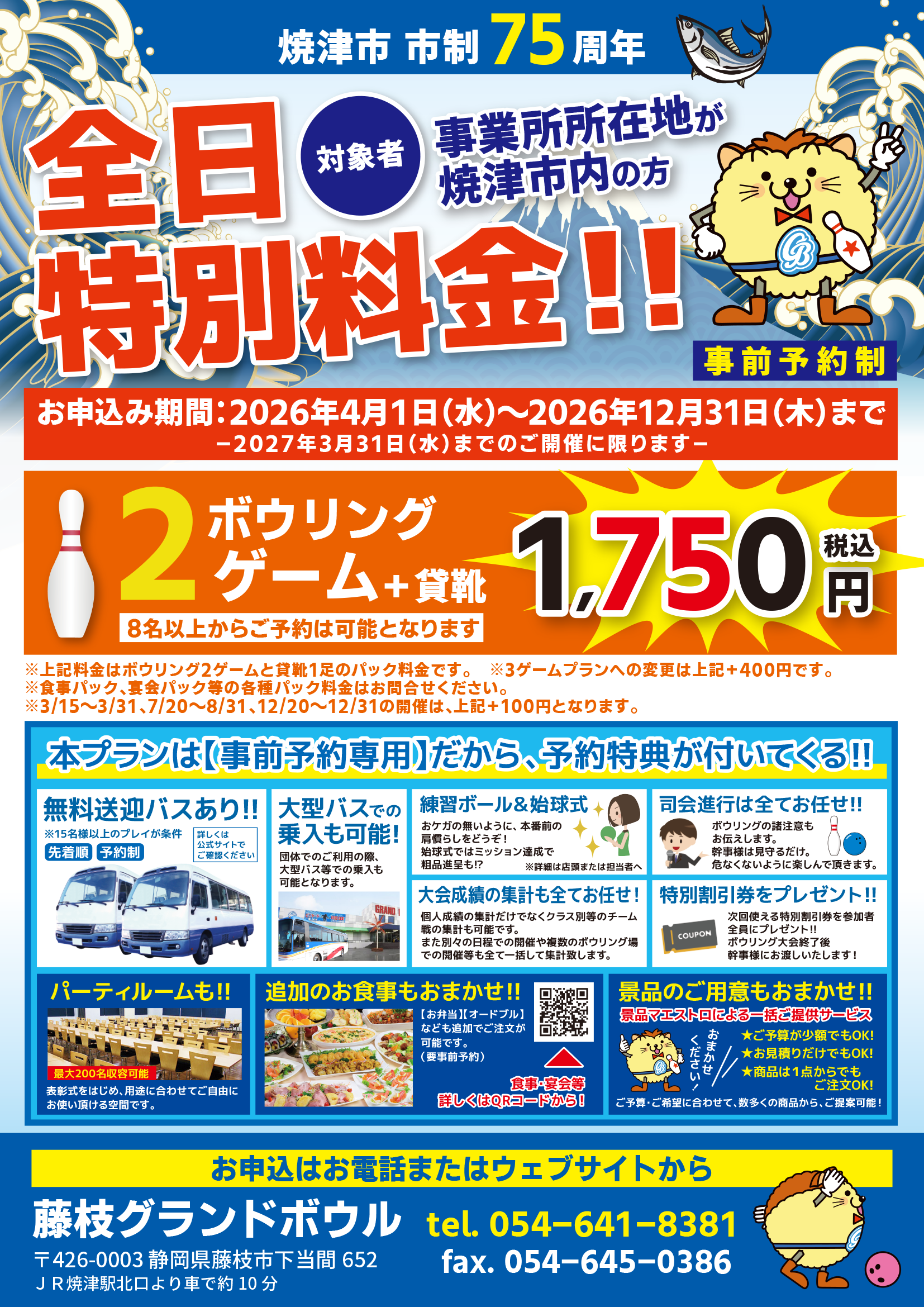 ※障がい者手帳をお持ちの方は、1ゲーム当たり500円が適用されます(同伴者の適用はございません)