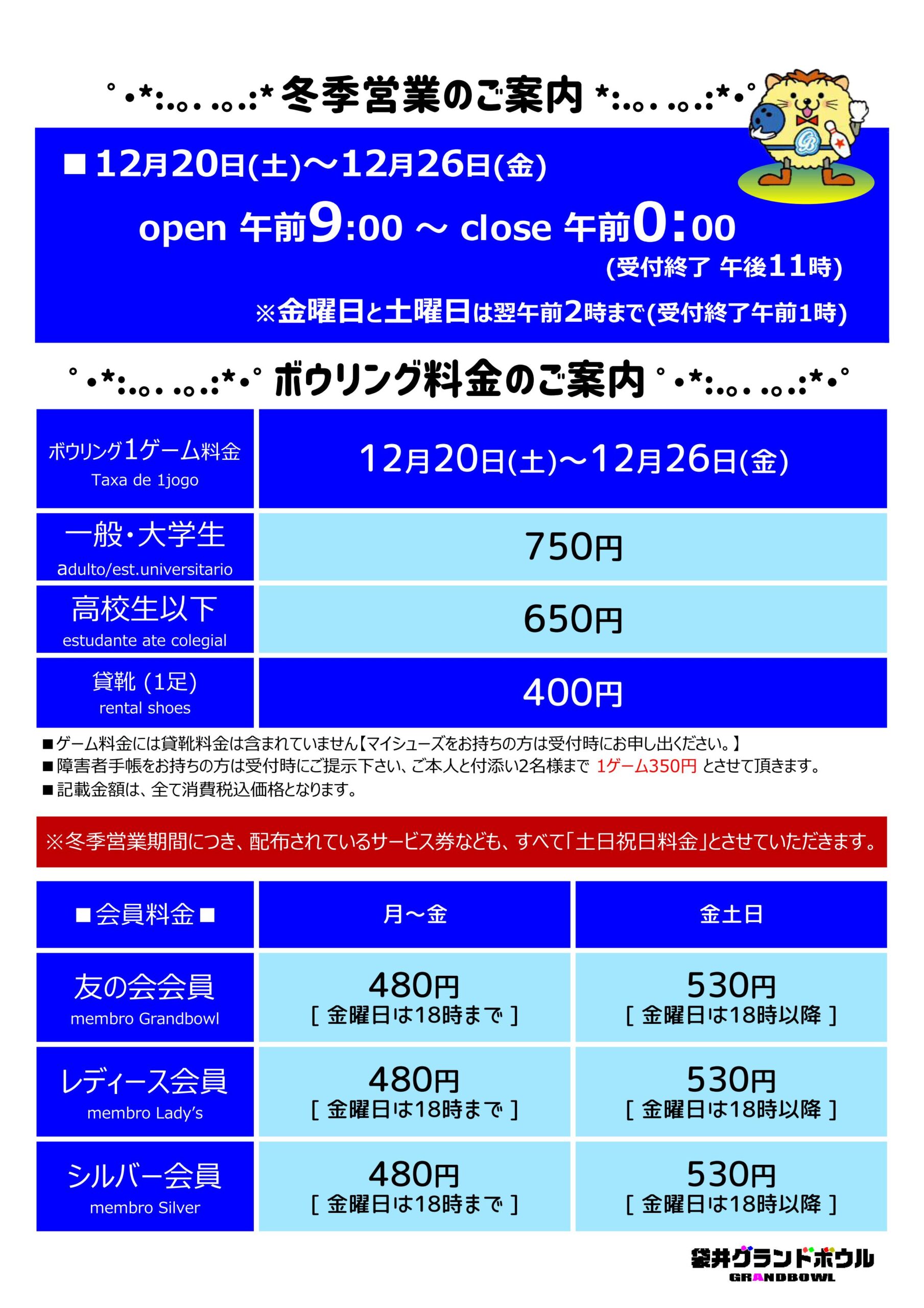 冬季営業についてのご案内