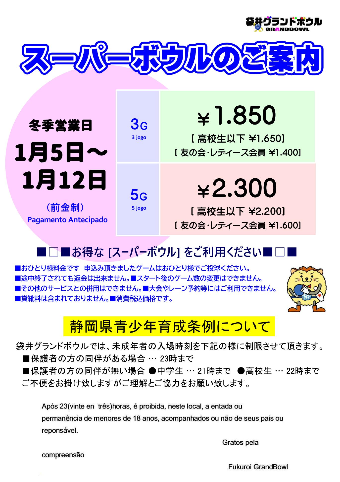 冬季営業についてのご案内