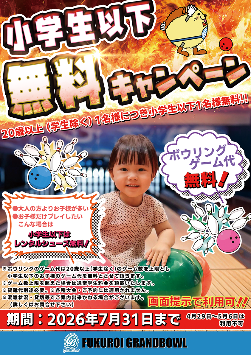 グランドボウルでは、小さなお子様でも安心してお楽しみ頂けますよう、キッズ向けのアイテムを完備しております。