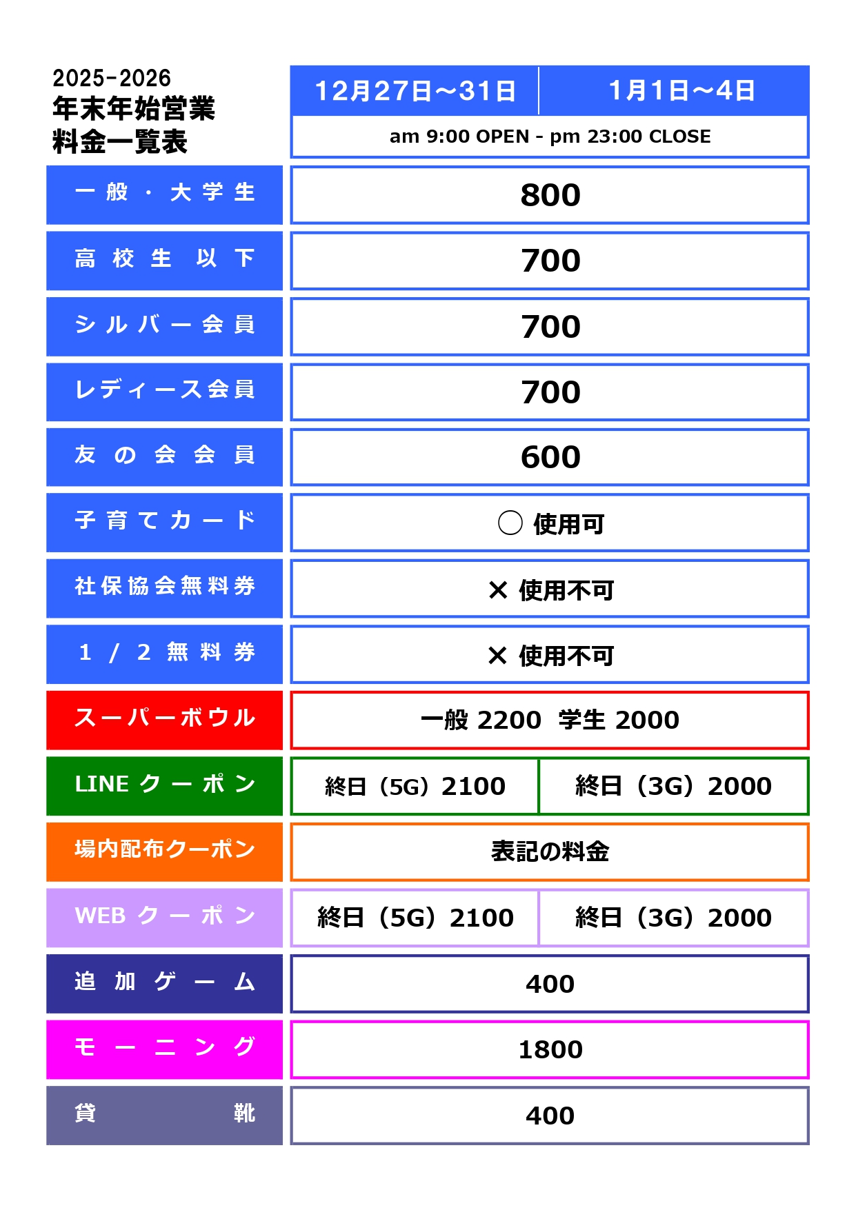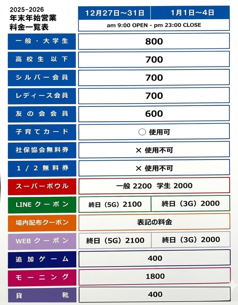 2025年12月27日(土)~2026年1月4日(日)は、年末年始特別営業期間となります。