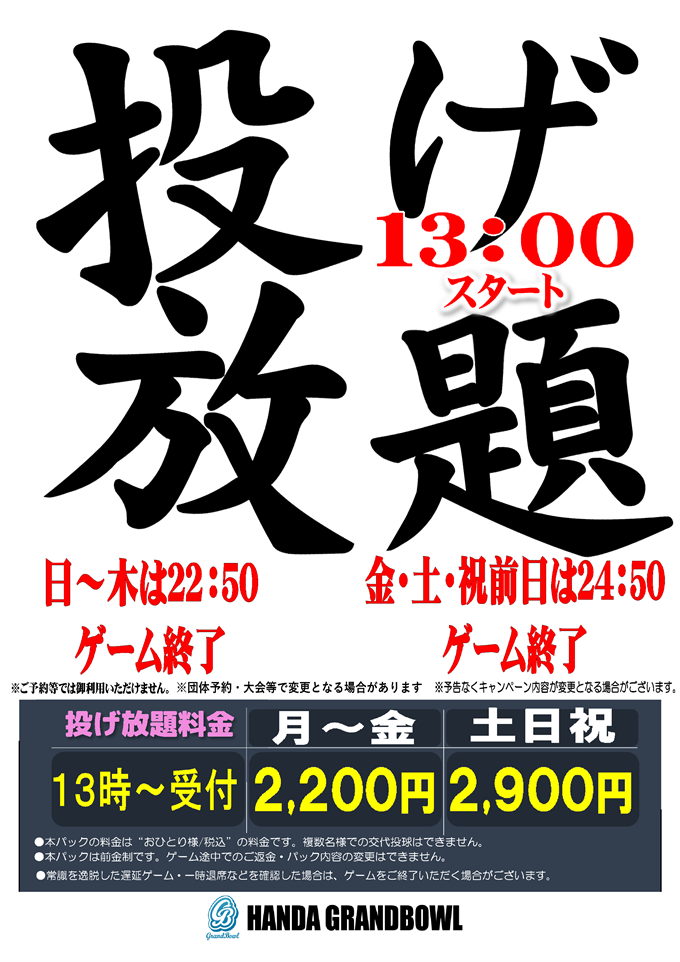 ※事前予約・レーン指定はお断りさせていただきます。