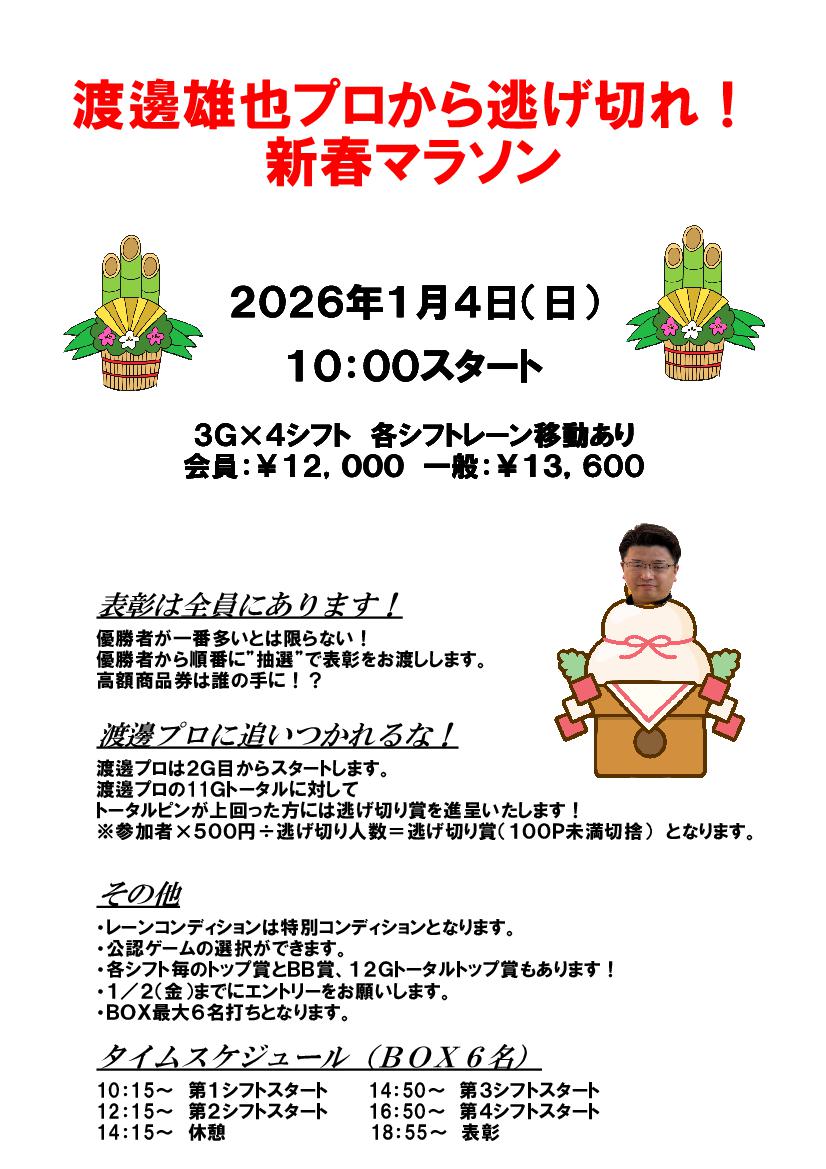 お正月期間ボウリング料金のお知らせ(1/1~1/5)