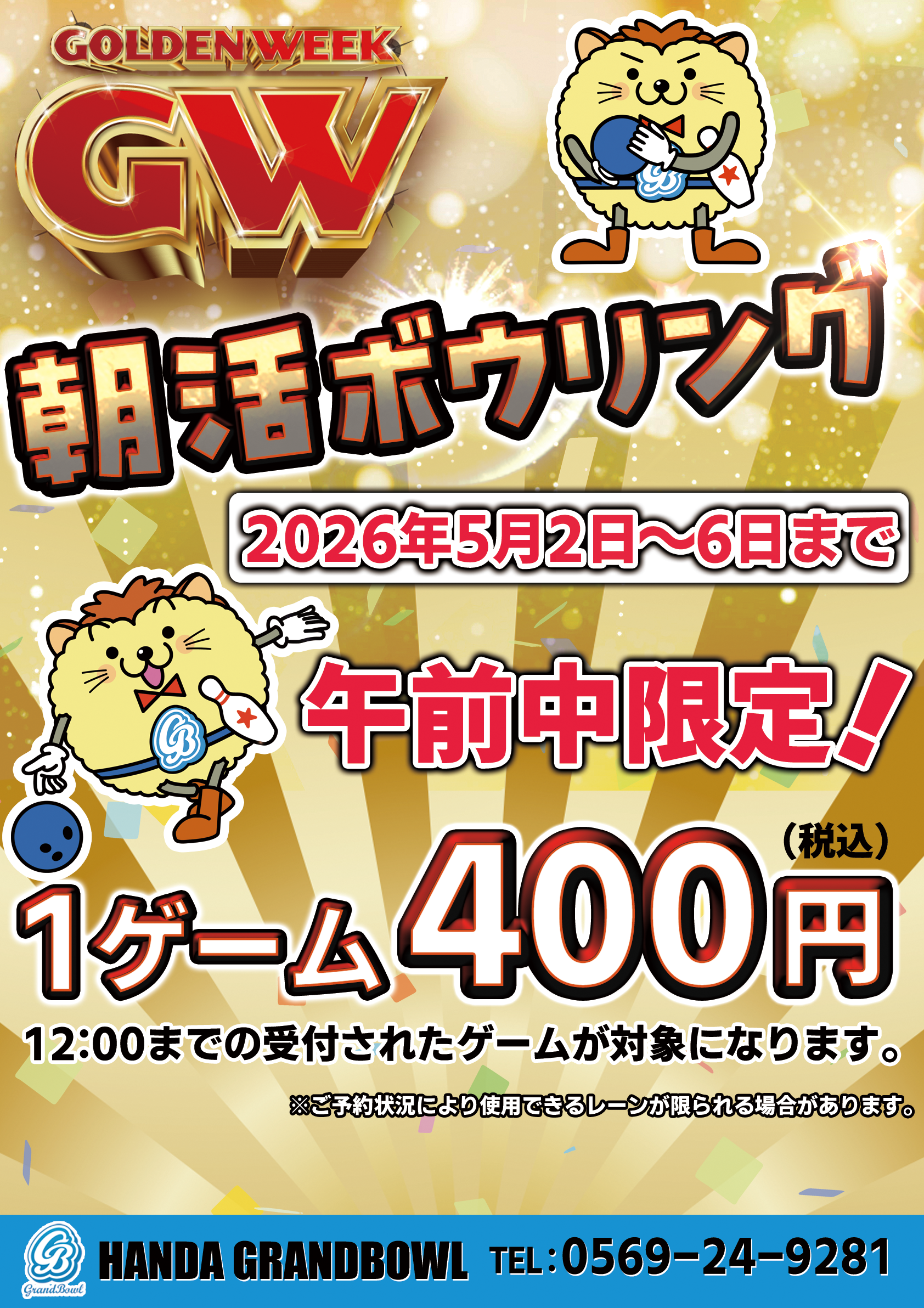 【GW朝活】5月2日~5月6日 午前中受付 1G 400円!!