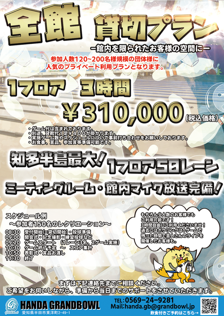 新.ボウリング場でパーティー~ケータリングBBQプラン~~飲み放題プラン~