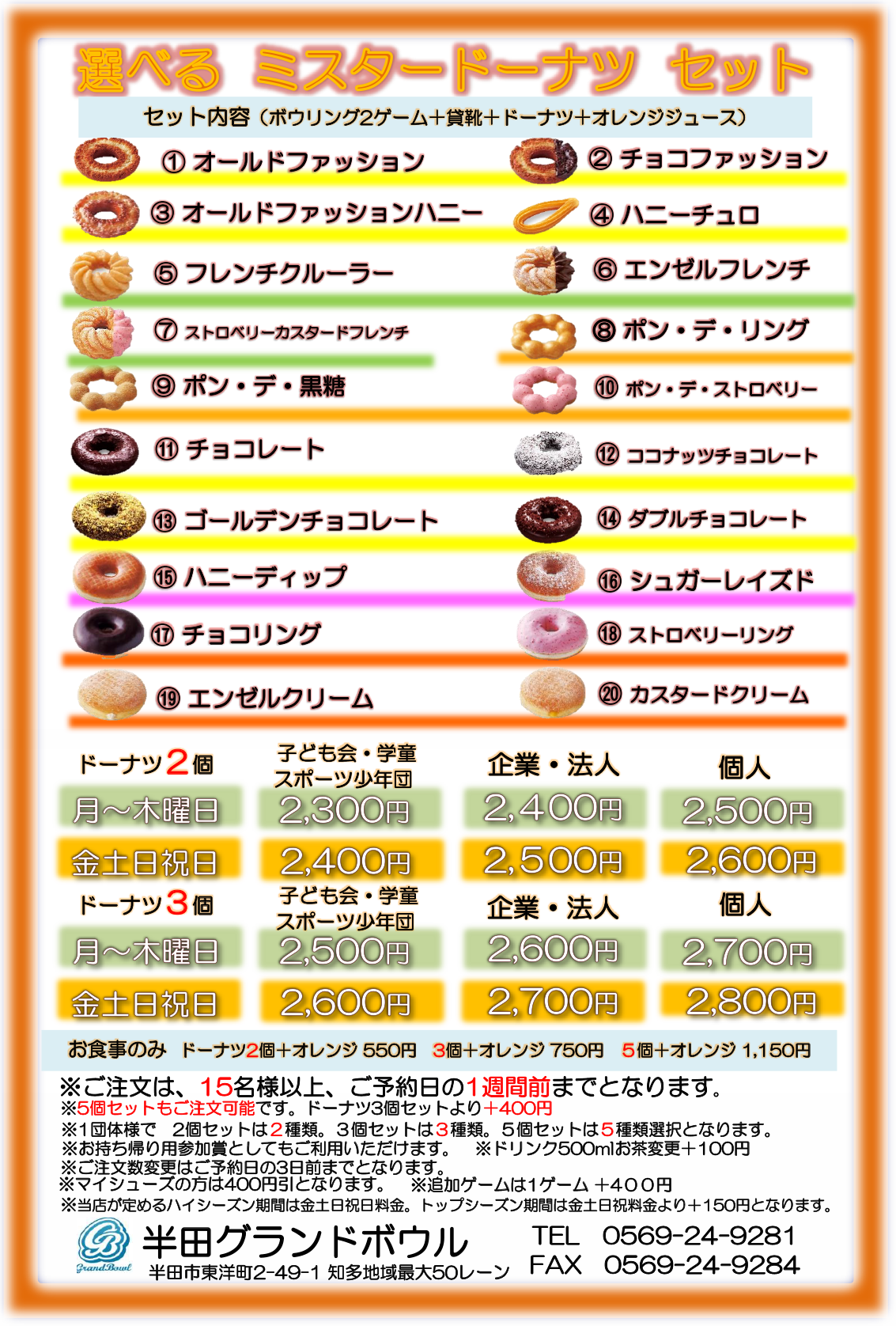 ※料金に関しましては、各団体プランのドーナツ&ボウリングセットをご参照ください。