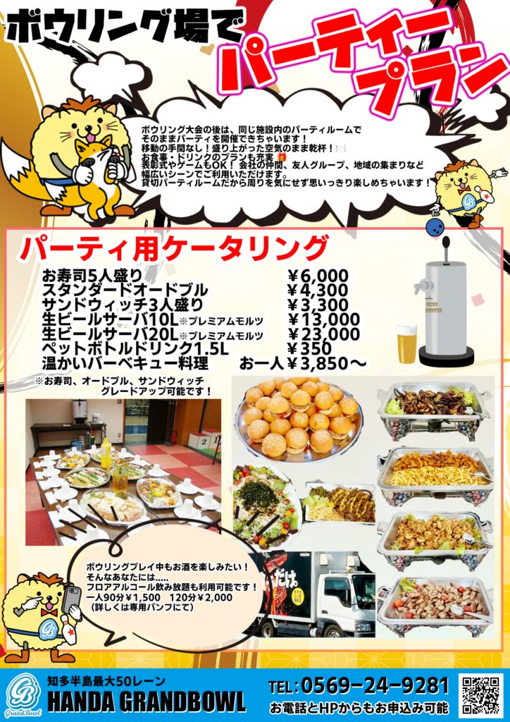 ボウリングの後は同じ施設内でそのままパーティーができちゃいます♪