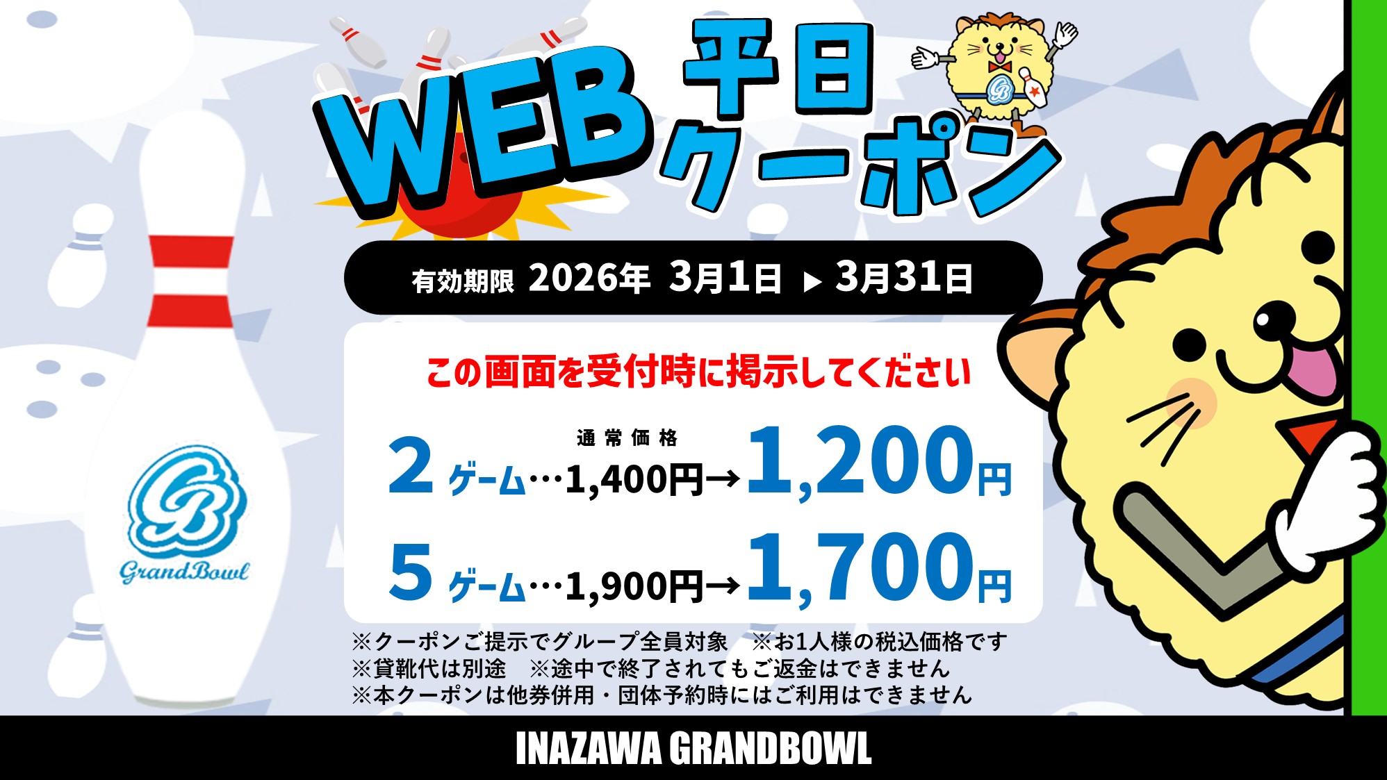 3月平日クーポン