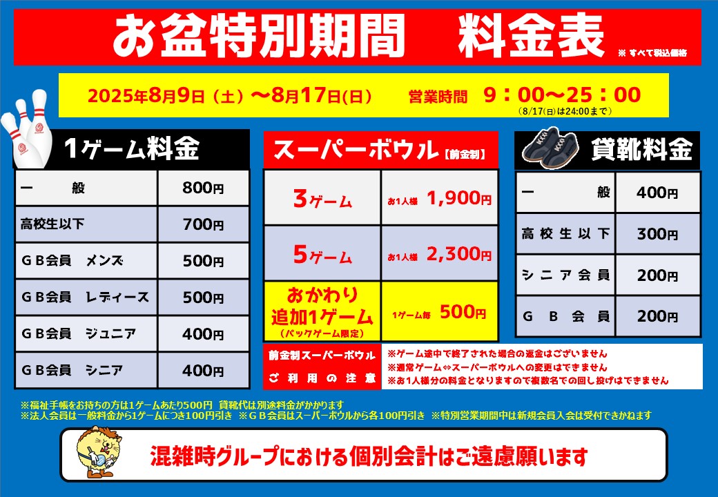 ※福祉障碍者手帳をお持ちの方は1ゲーム500円 別途上記の貸靴代がかかります