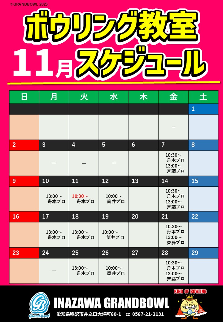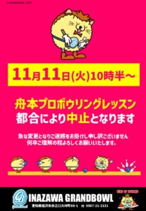 11/11(火)舟本舞プロレッスンは都合により中止となります。(11/11 9時更新)