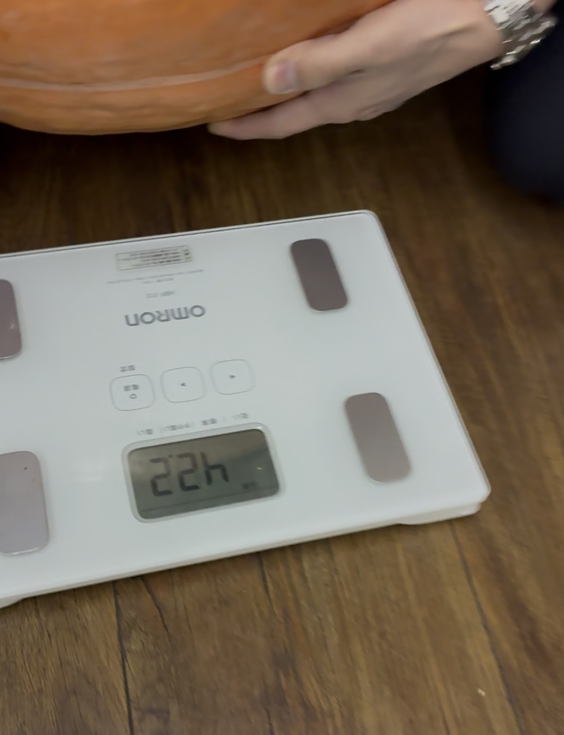 体脂肪率も図れる体重計ですがDr.ハロウィンかぼちゃ様は体重のみ計測します!(^^)!