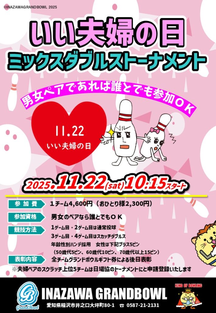 【2025年11月22日(土)いい夫婦の日ミックスダブルストーナメント】