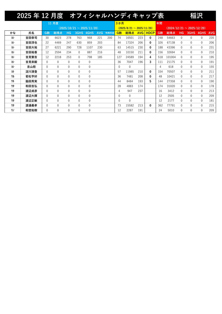 ハンディキャップ適用は2025年12月1日からになりますのでお間違えの無いようお願いいたします。