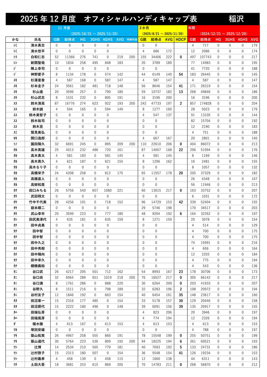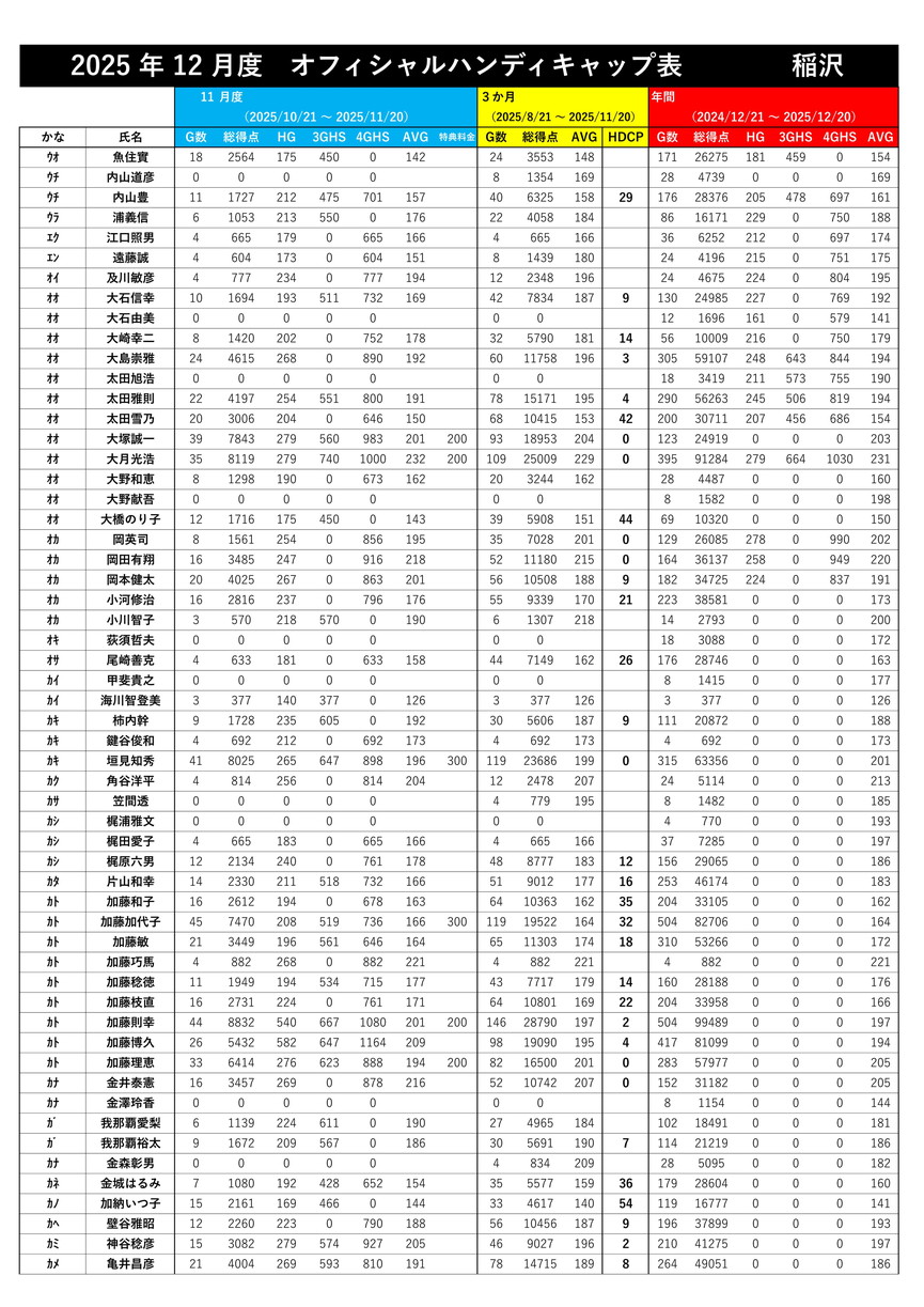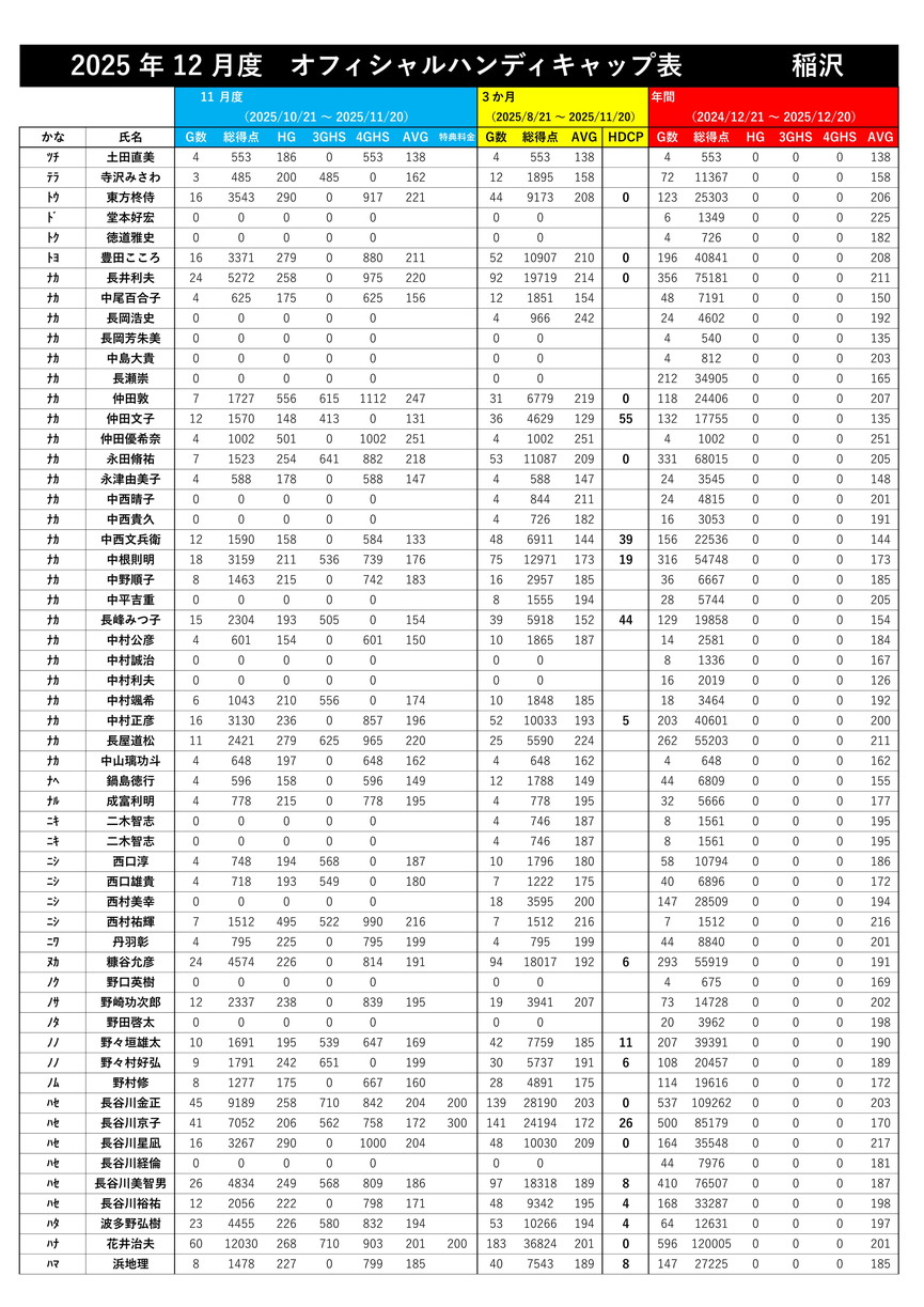 2025年10月21日~2025年11月20日までの公認ゲームアベレージの集計ができましたので掲載いたします。