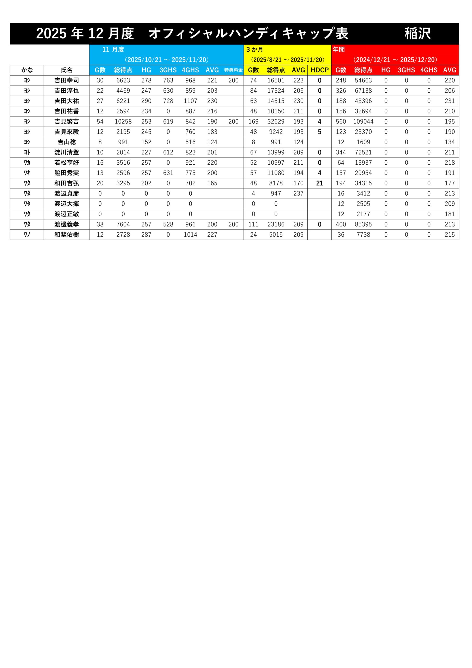 ハンディキャップ適用は2025年12月1日からになりますのでお間違えの無いようお願いいたします。