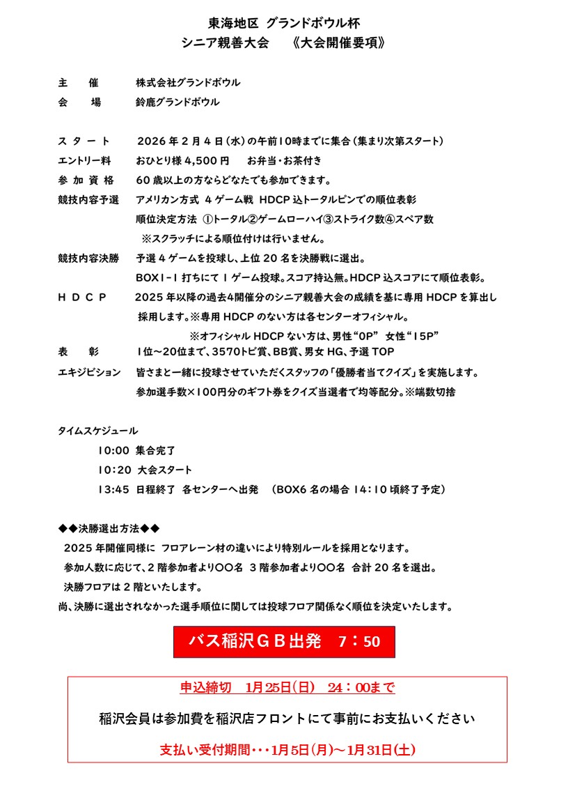 ※参加費を稲沢グランドボウルにて先にお支払いください