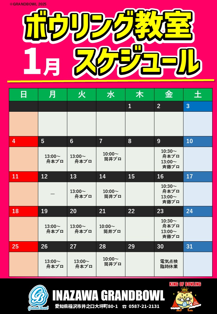 ※1/5(月)舟本舞プロレッスンはレーン混雑状況によりBOX最大4名となる場合がございます