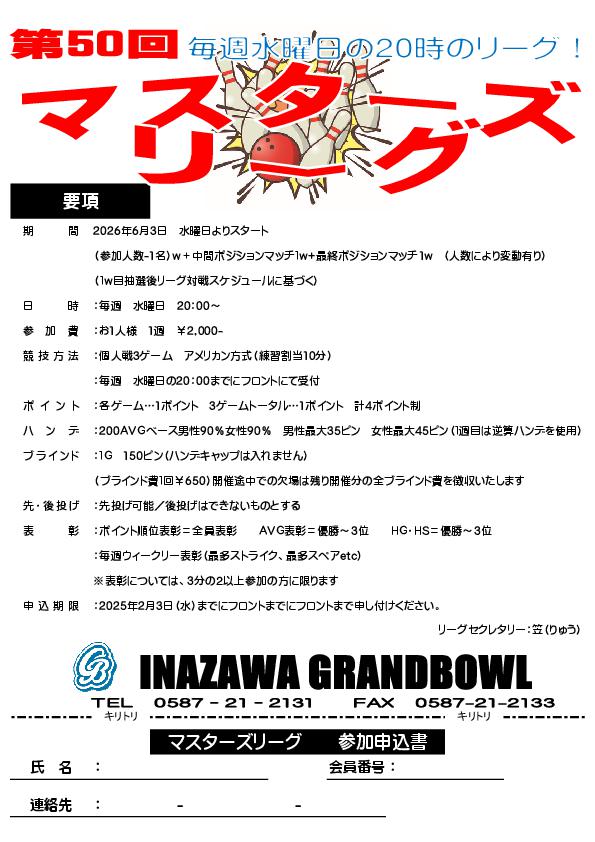2026年6月3日(水)より第50回マスターズリーグがスタートします。
