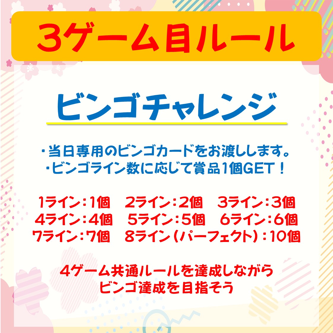 各ゲームのミッションをクリアしてお菓子やジュースをたくさんGETするイベントになっています。