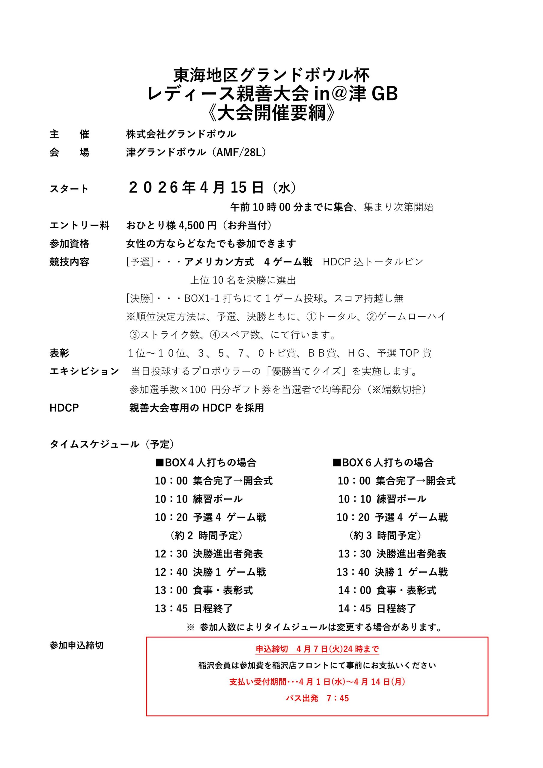 ※参加費を稲沢グランドボウルにて先にお支払いください