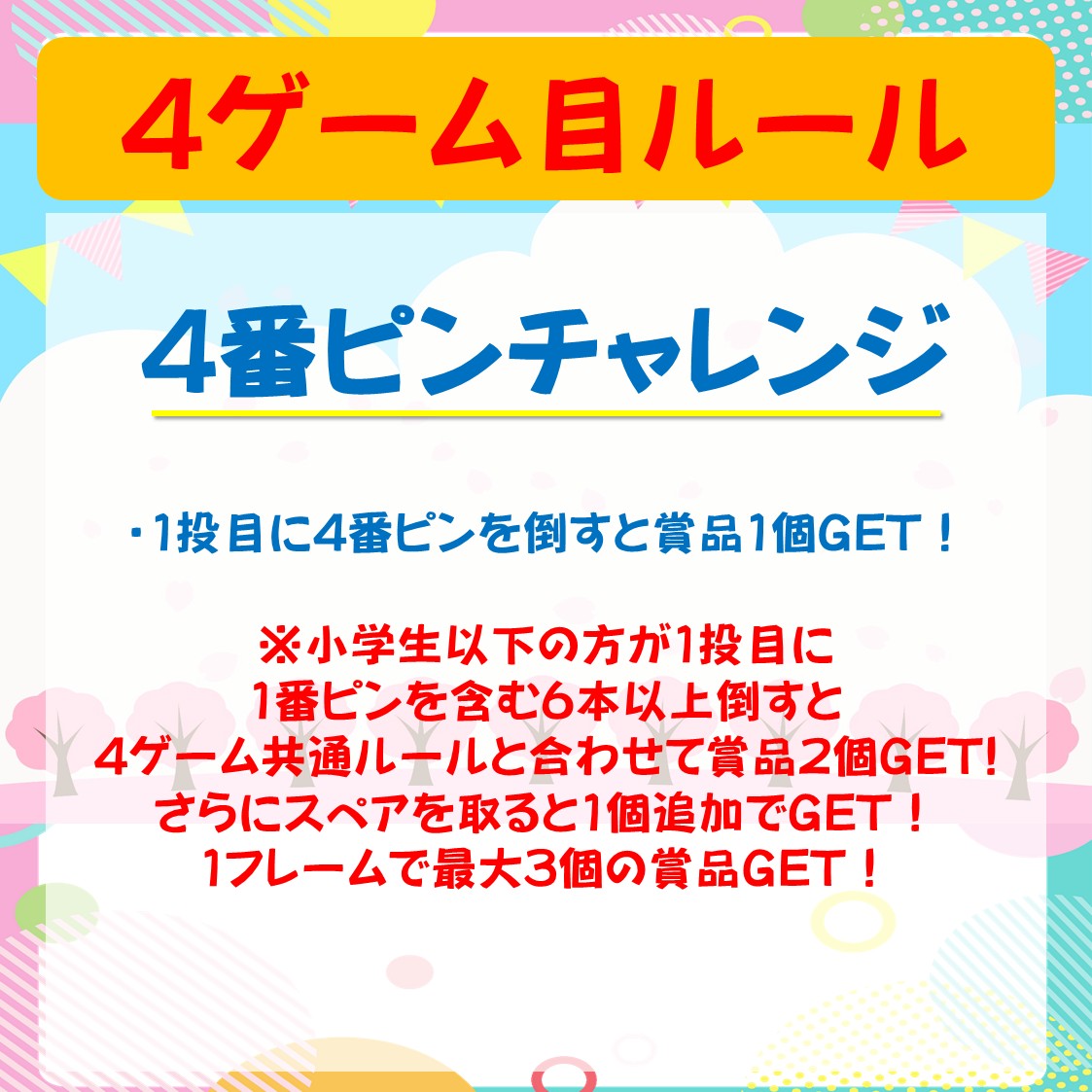 1つのスコアをチームにて交代で投球します(全部で4ゲーム)
