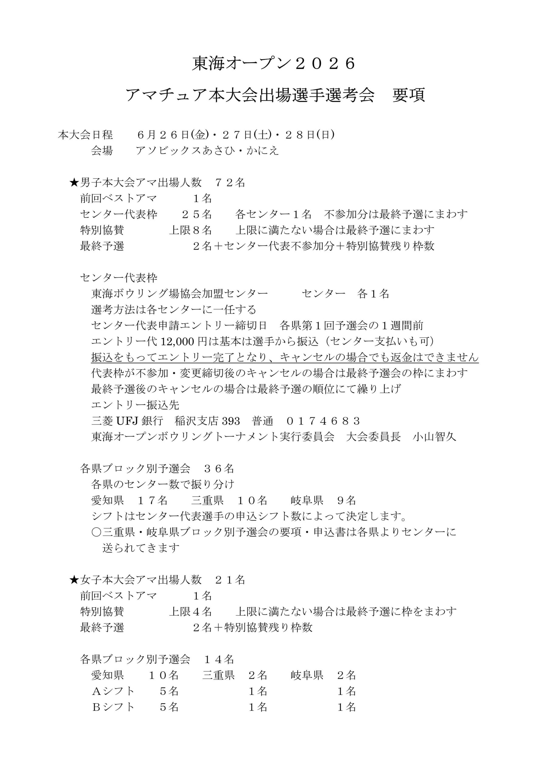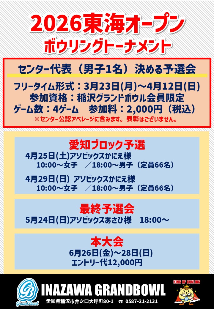 【センター代表選考会】2026東海オープンボウリングトーナメント