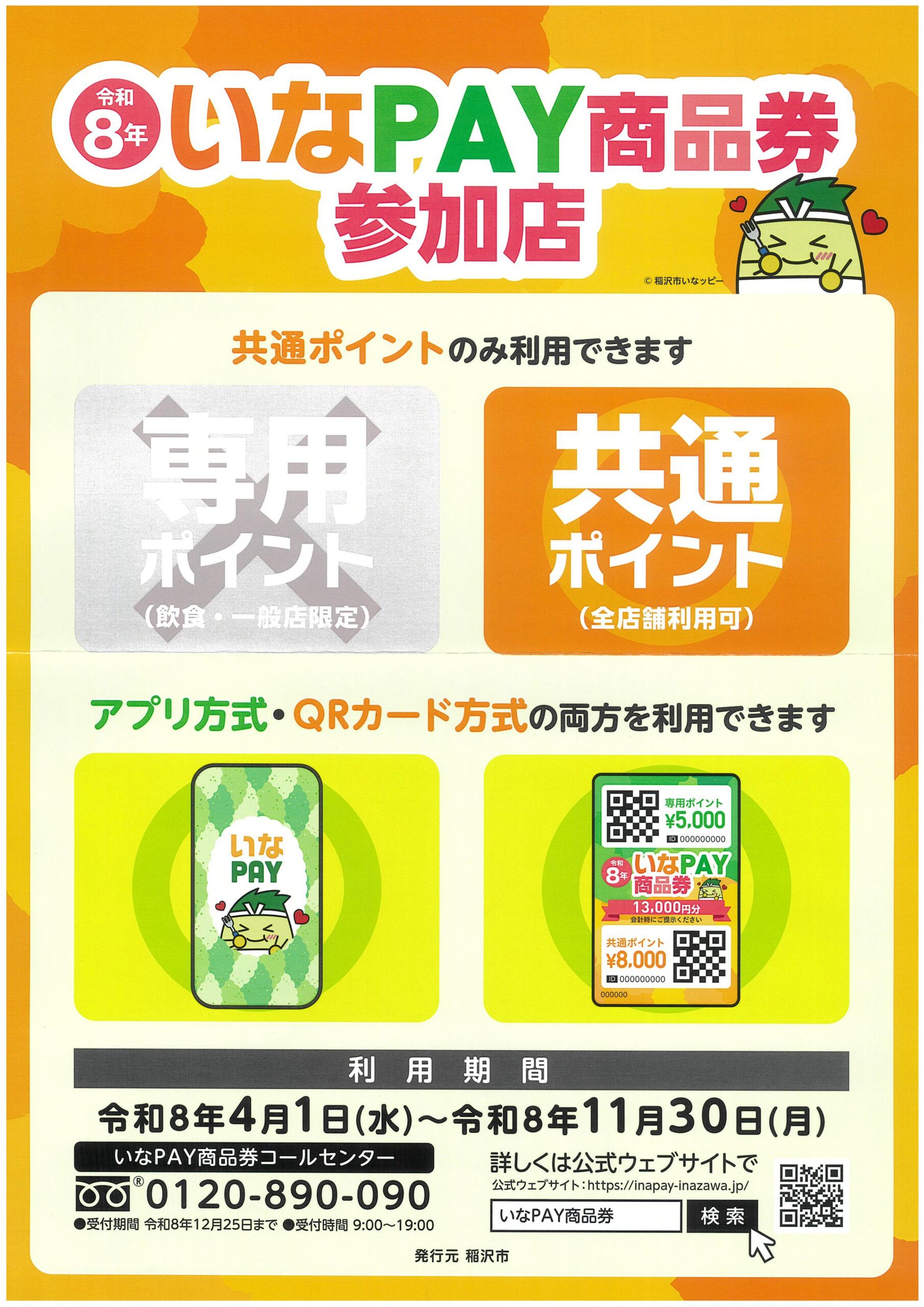当店は令和8年いなPAY商品券の対象店舗でございます