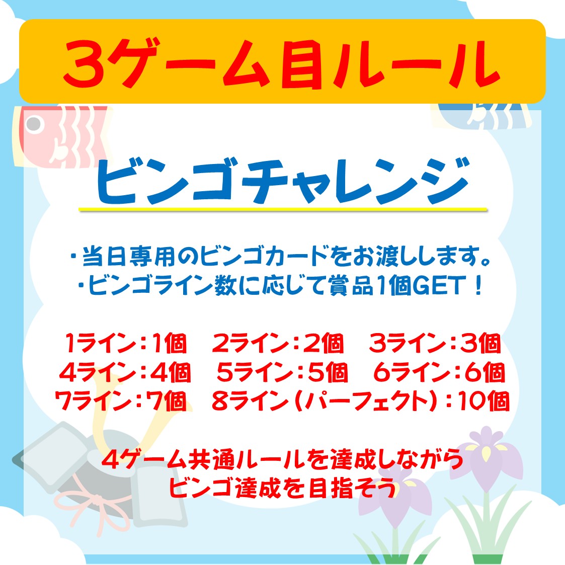 各ゲームのミッションをクリアしてお菓子やジュースをたくさんGETするイベントになっています。