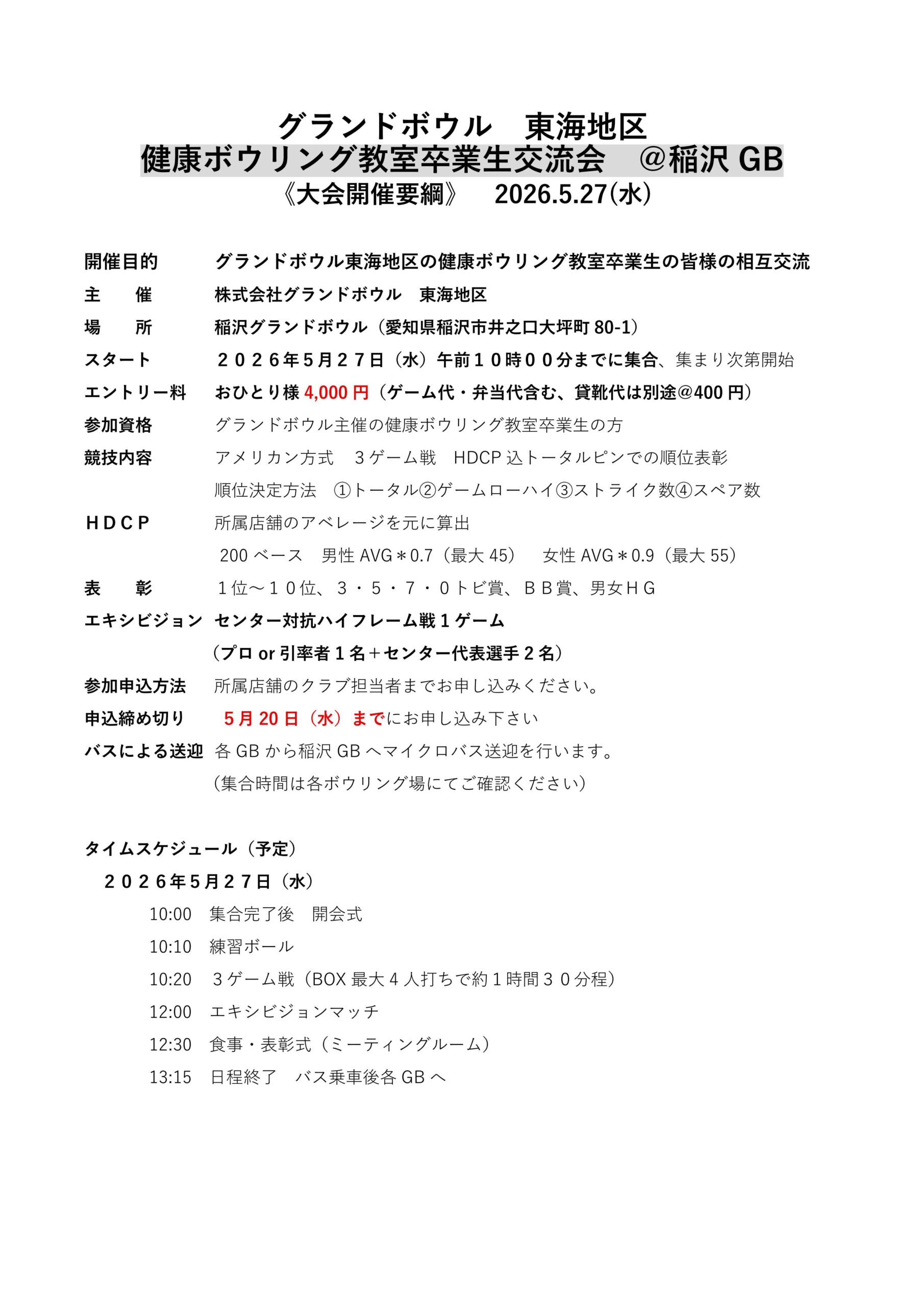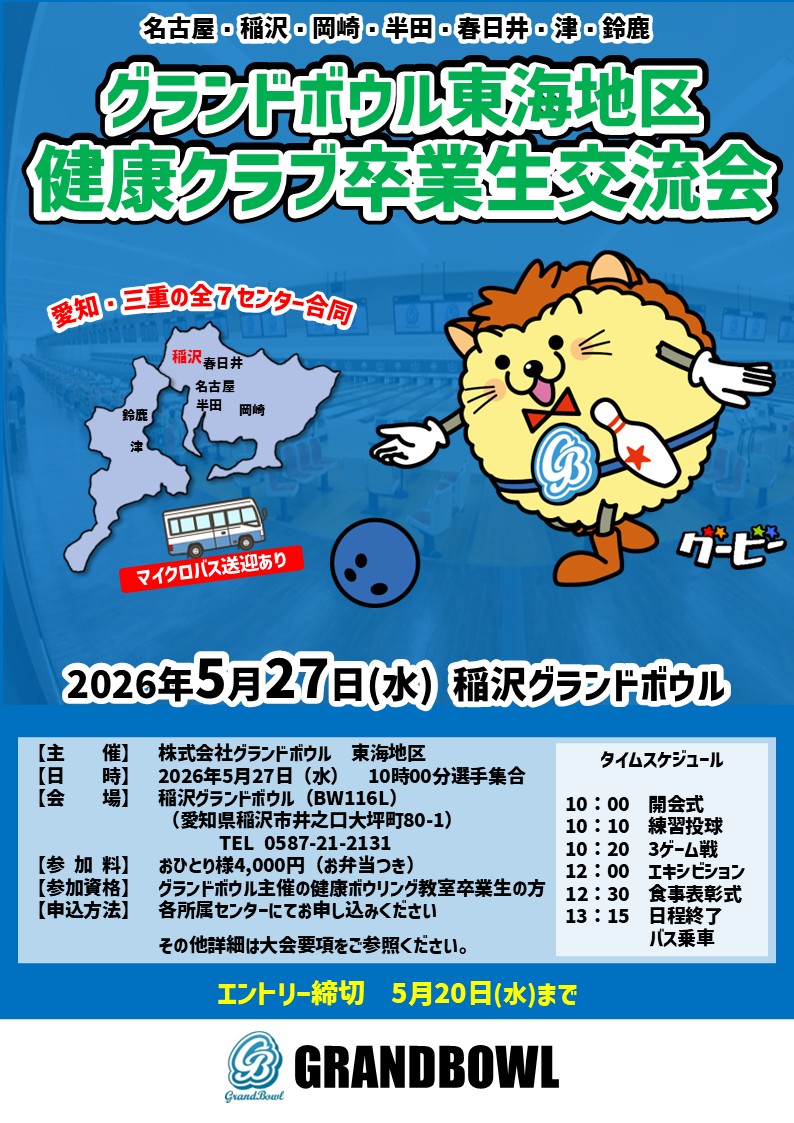 【2026年5月27日(水)グランドボウル東海地区健康ボウリング教室卒業生交流会in稲沢】