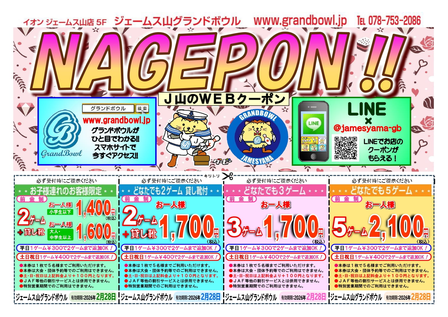 お得なクーポン「NAGEPON💖」2026年2月28日まで使えます(^^)/。