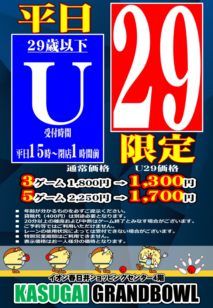 U29:平日15時以降29歳以下限定
