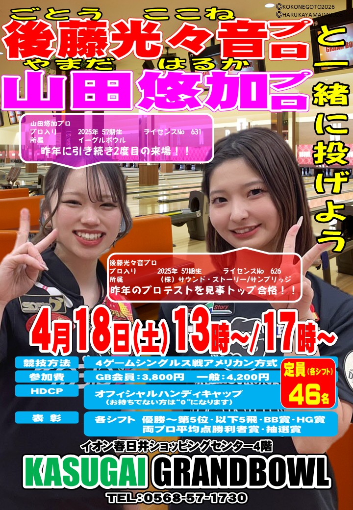 【2026年4月18日(土)後藤光々音プロ・山田悠加プロといっしょに投げよう】