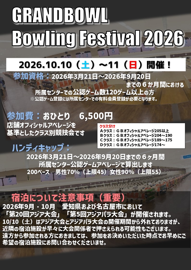 【GRANDBOWL Bowling Festival 2026】2026年10月10日(土)~11日(日)