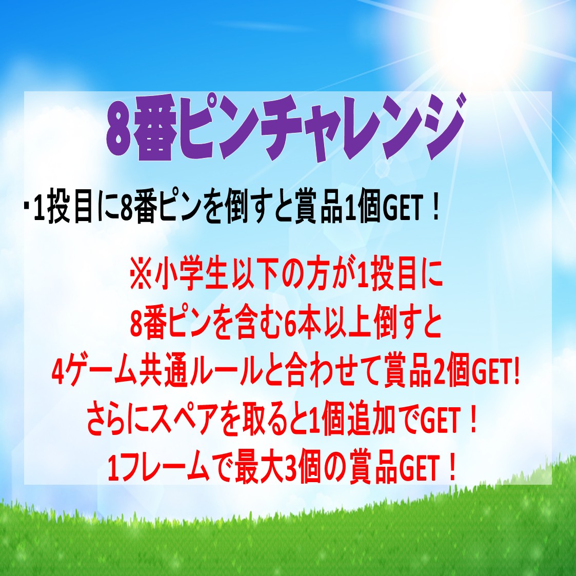 次の来場で1ゲーム400円、また次の来場で1ゲーム350円、さらに次の来場で1ゲーム300円、そして次の来場で写真付きのカードに代わり小学校卒業まで1ゲーム200円になります!!