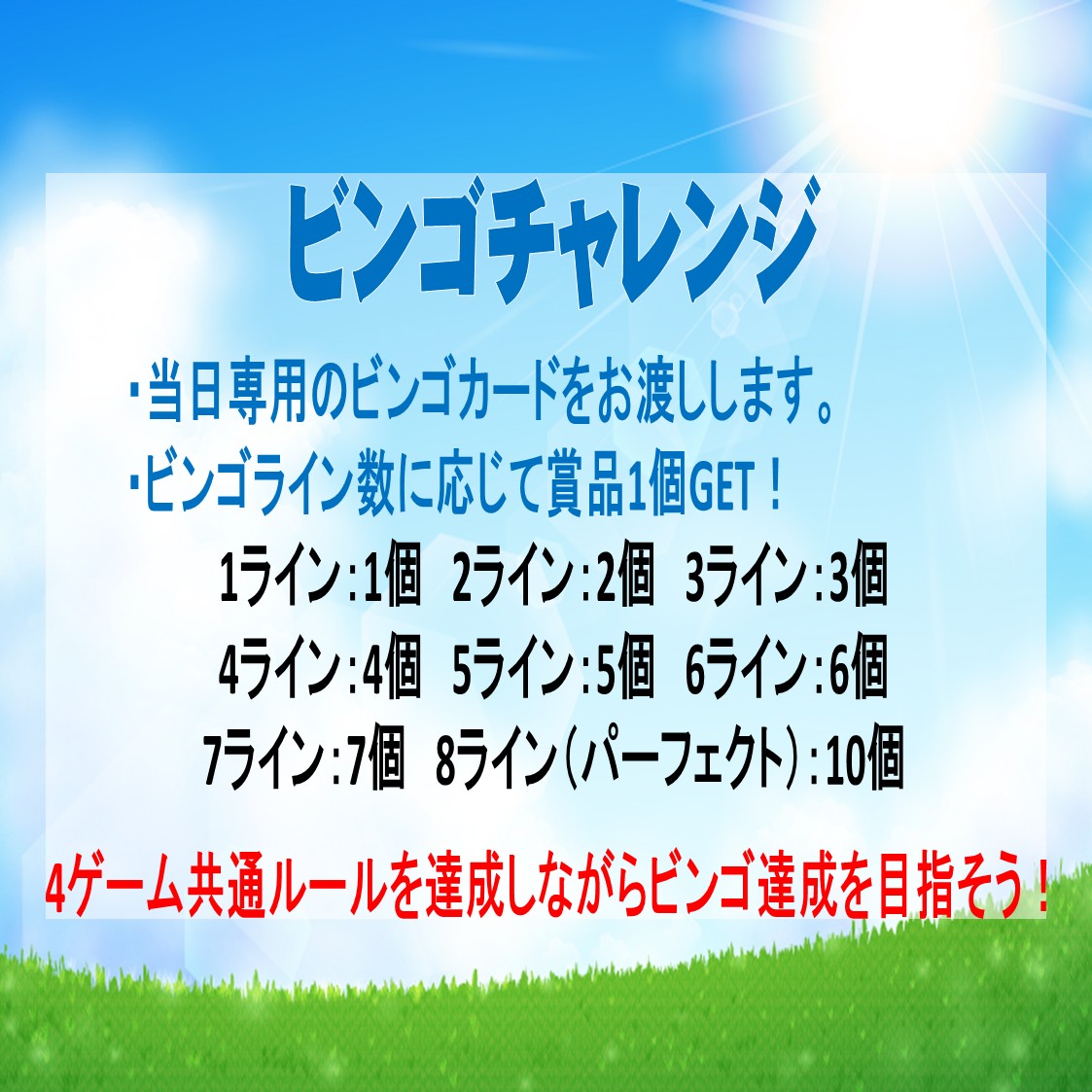 各ゲームのミッションをクリアしてお菓子やジュースをたくさんGETするイベントになっています。