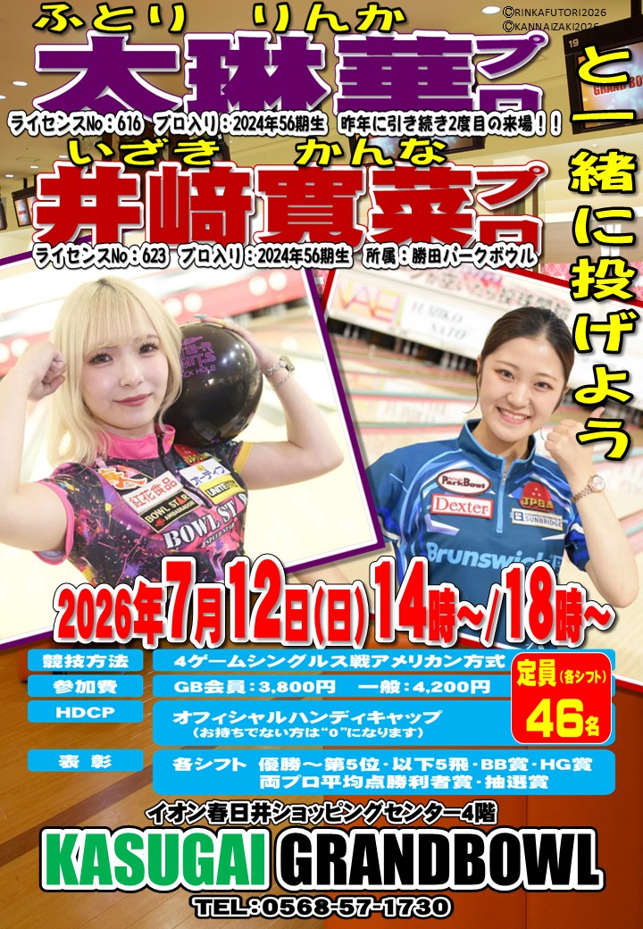 【2026年7月12日(日)太琳華プロ・井﨑寛菜プロといっしょに投げよう】