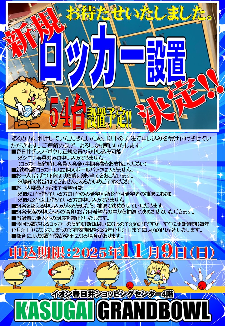 ■今回設置されるロッカーの契約は新規扱いになるので3,500円ですが、すぐに更新時期(毎年12月31日)になってしまうので有効期限を2026年12月31日までにし4,000円/台といたします。