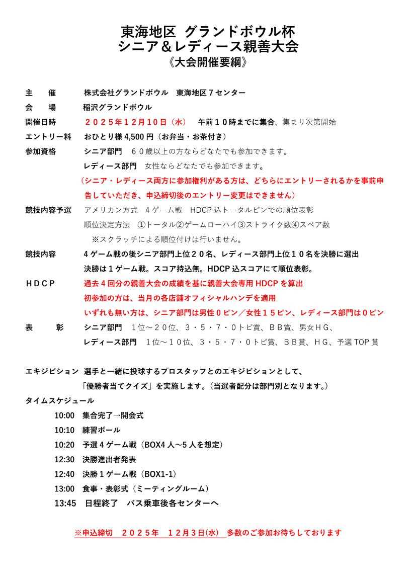 【2025年12月10日(水)シニア&レディース親善大会【稲沢】】