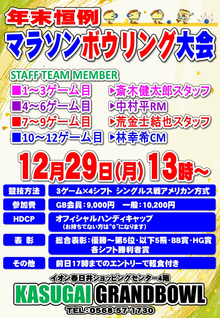 【年末恒例!!マラソンボウリング大会】(2025年12月29日(月)13時スタート)