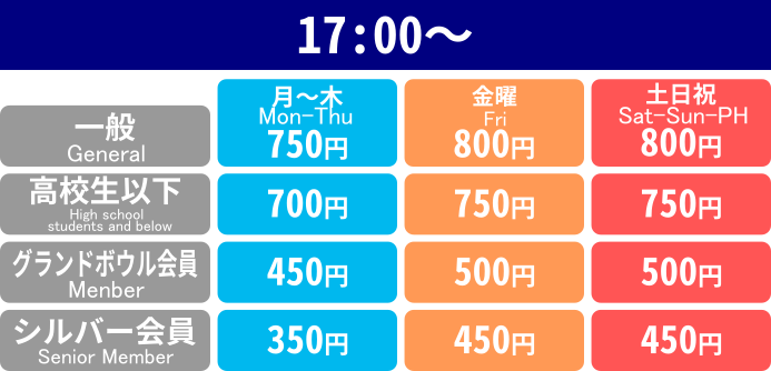 グランドボウルチェーン各店の正会員の方は、チェーン全店にて
