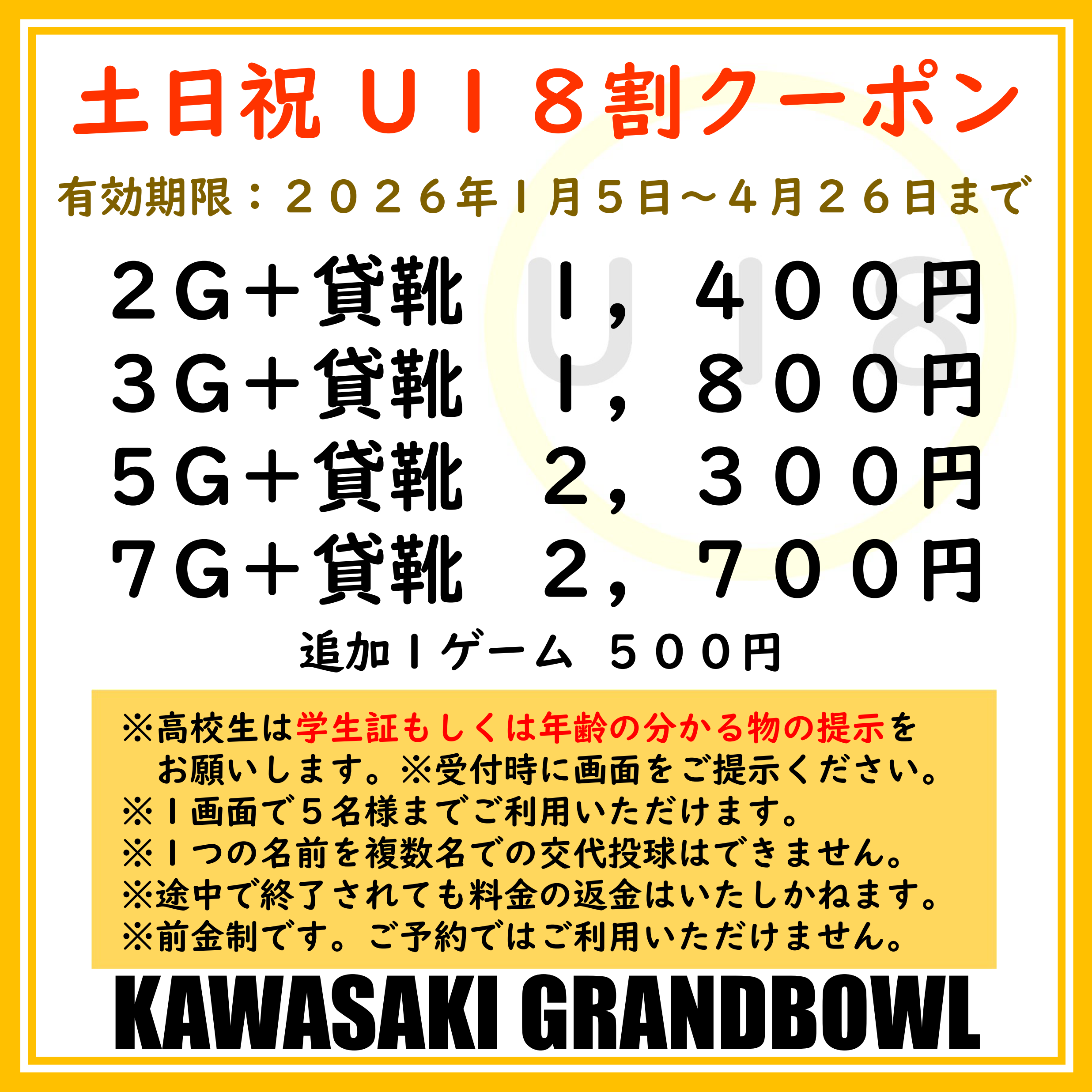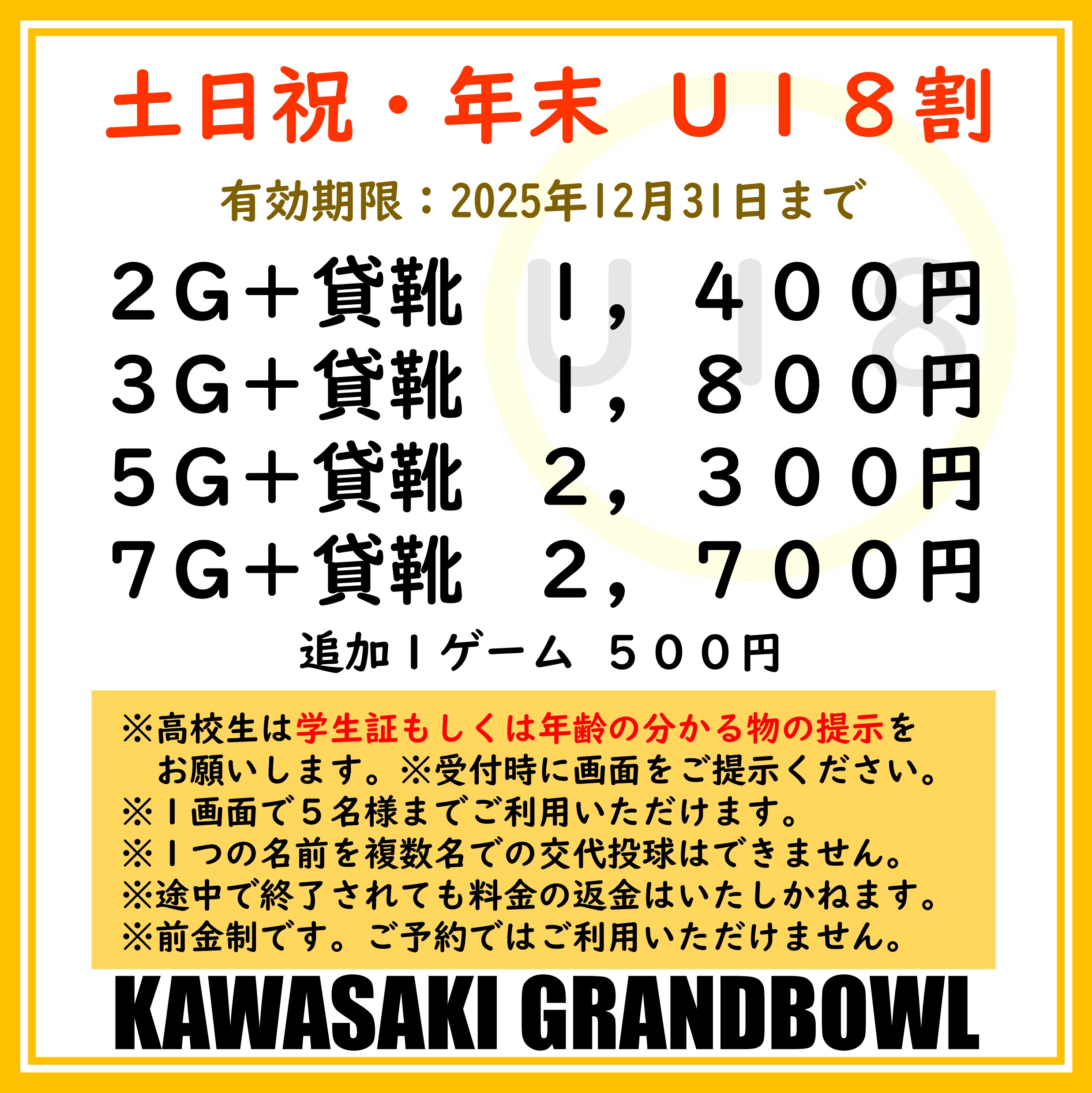 前払い制です。受付でこの画像をご提示ください。※高校生は学生証もしくは年齢の分かるものをご提示ください