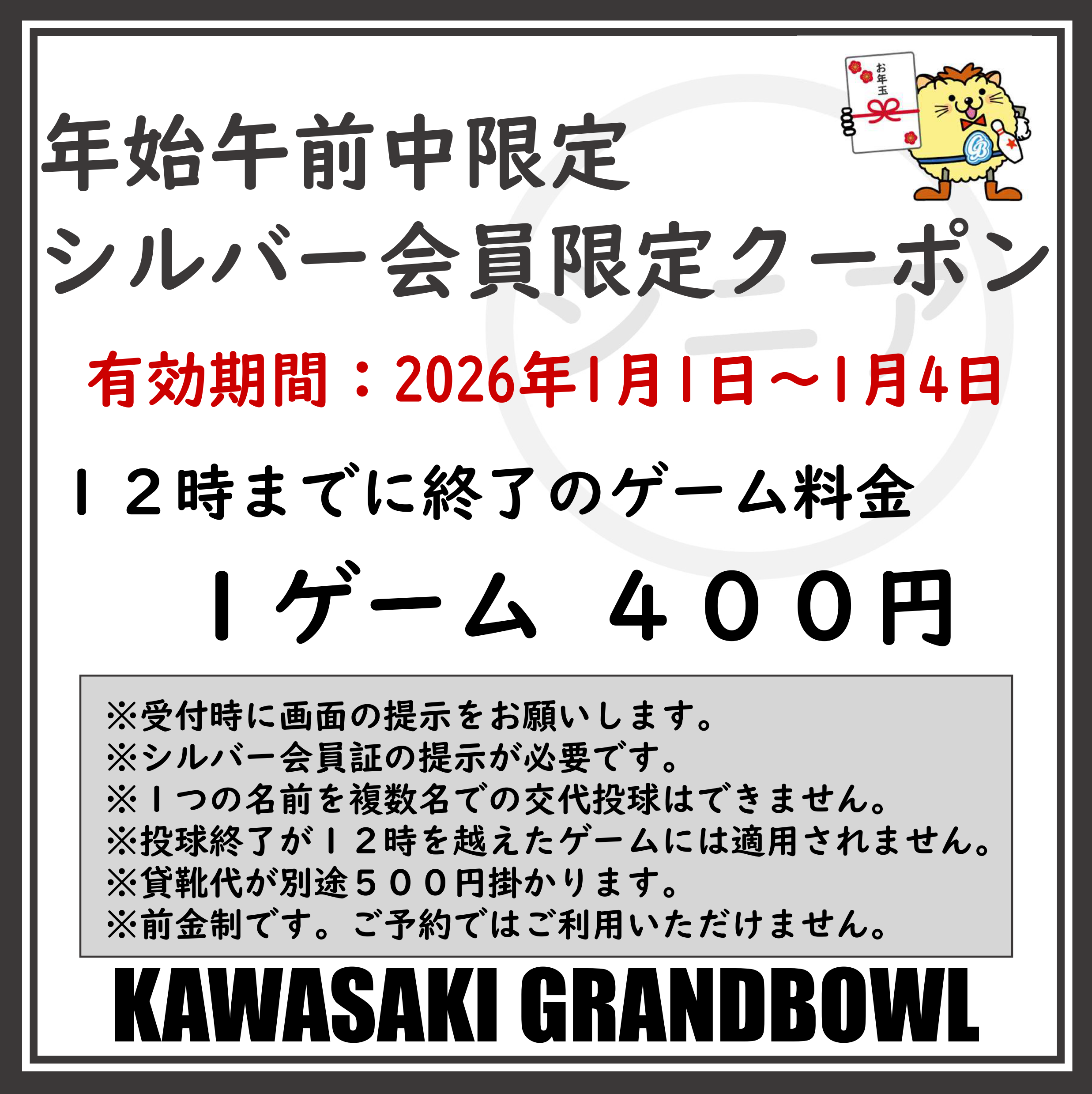 ※2026年の1/1(木)~1/4(日)午前中に使える、シルバー会員限定のクーポンです。