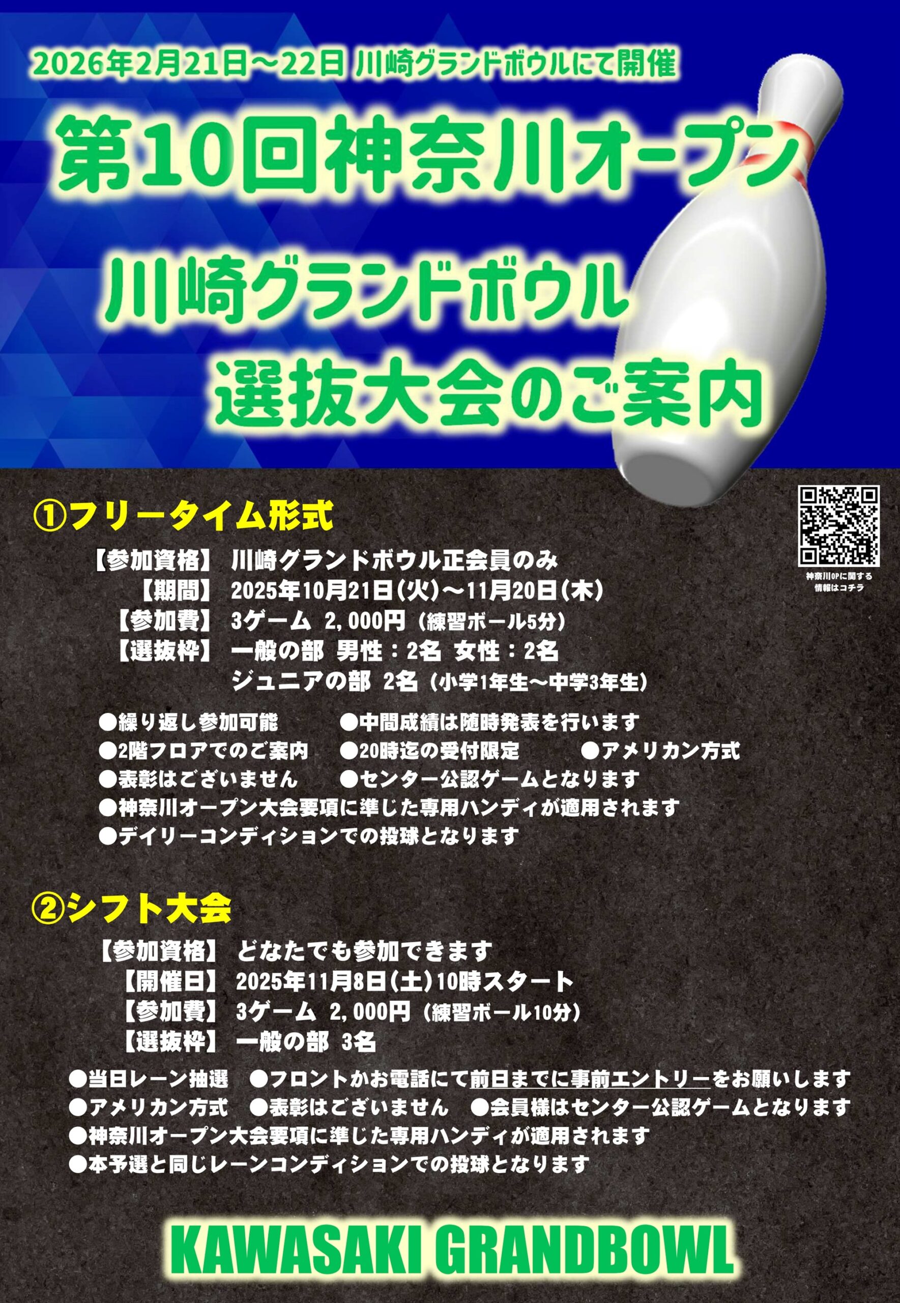 本大会への出場を懸けた予選会を、川崎グランドボウルでは以下の通り開催いたします。