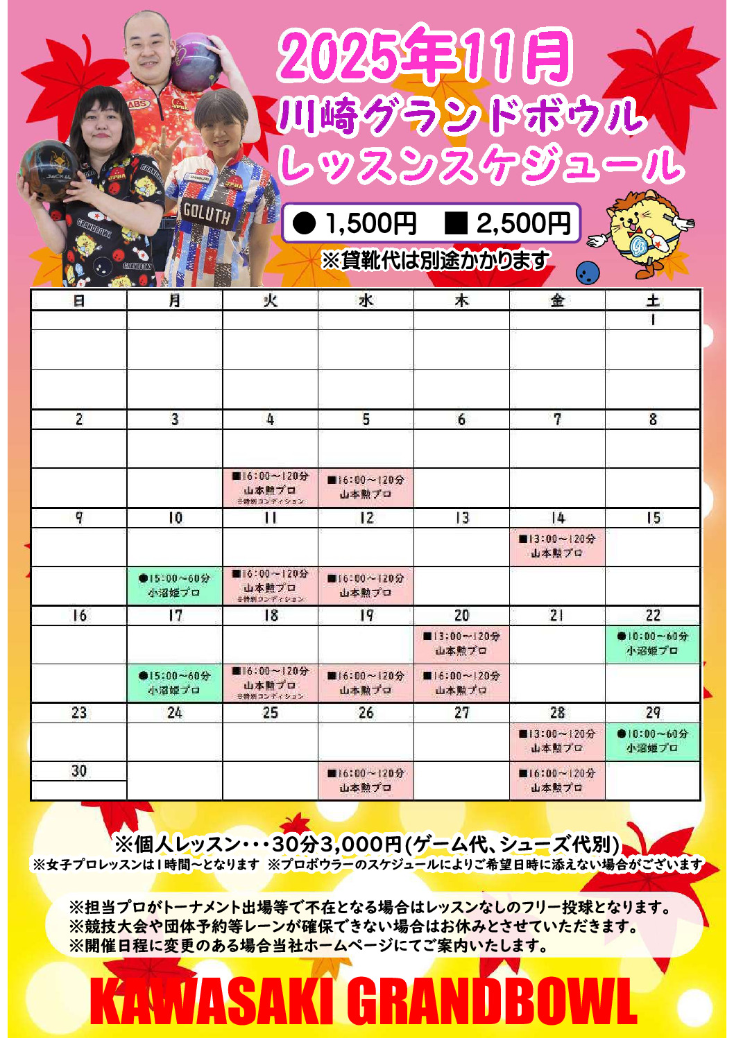 2025年11月レッスンスケジュール