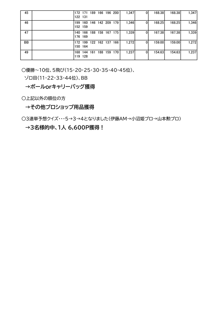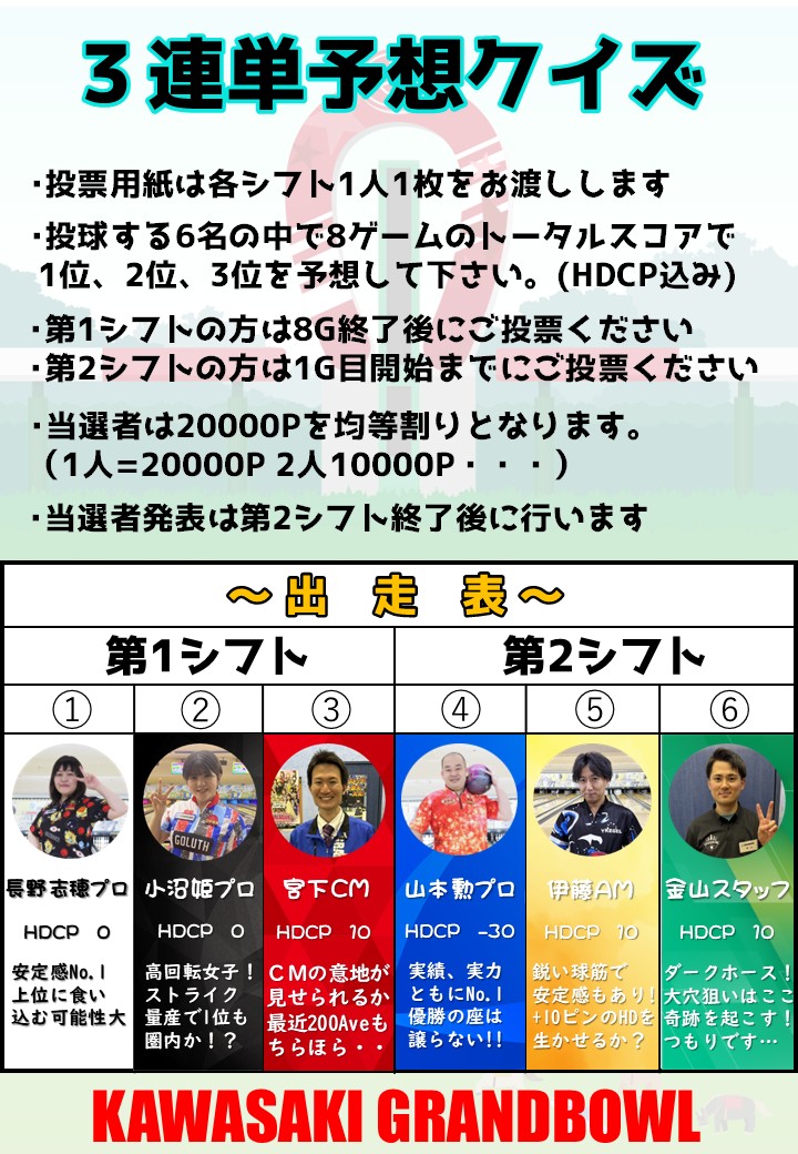 プロ・スタッフの1~3位を予想していただきます。当選者にて20000Pを山分けとなります。