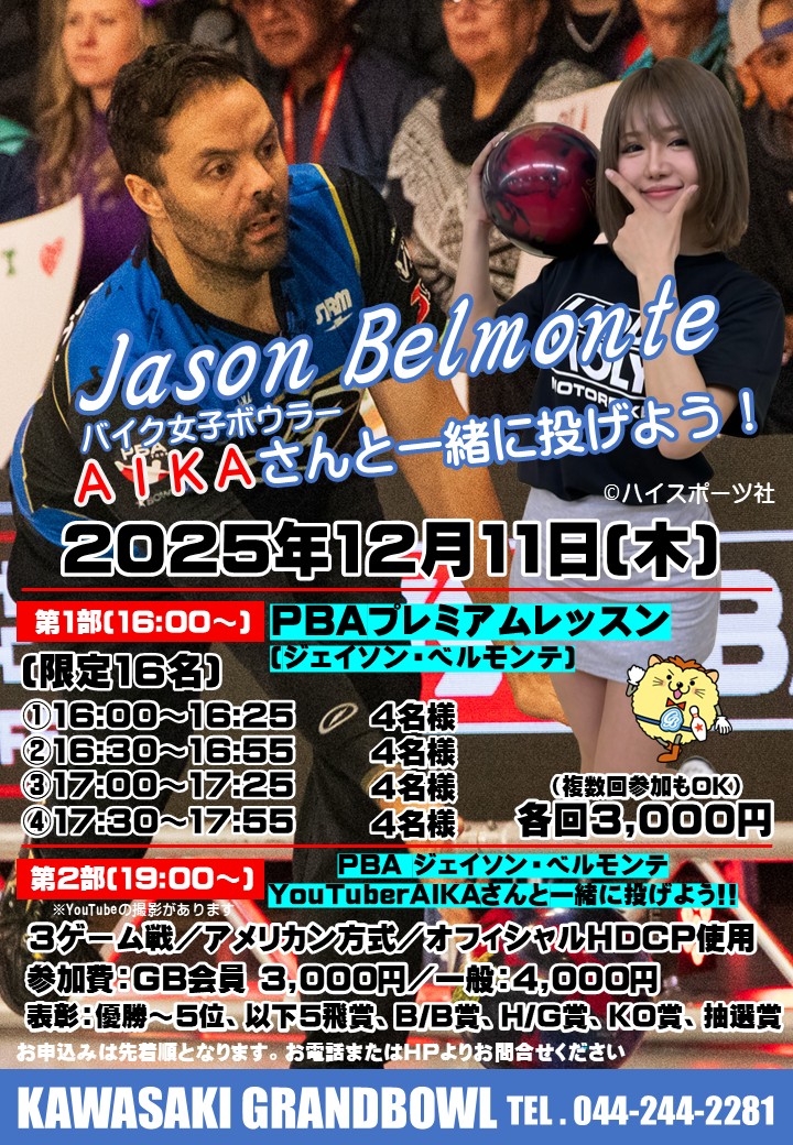 PBA『ジェイソン・ベルモンテプロ』& 話題のバイク女子ボウラー『AIKA』さんと一緒に投げよう!