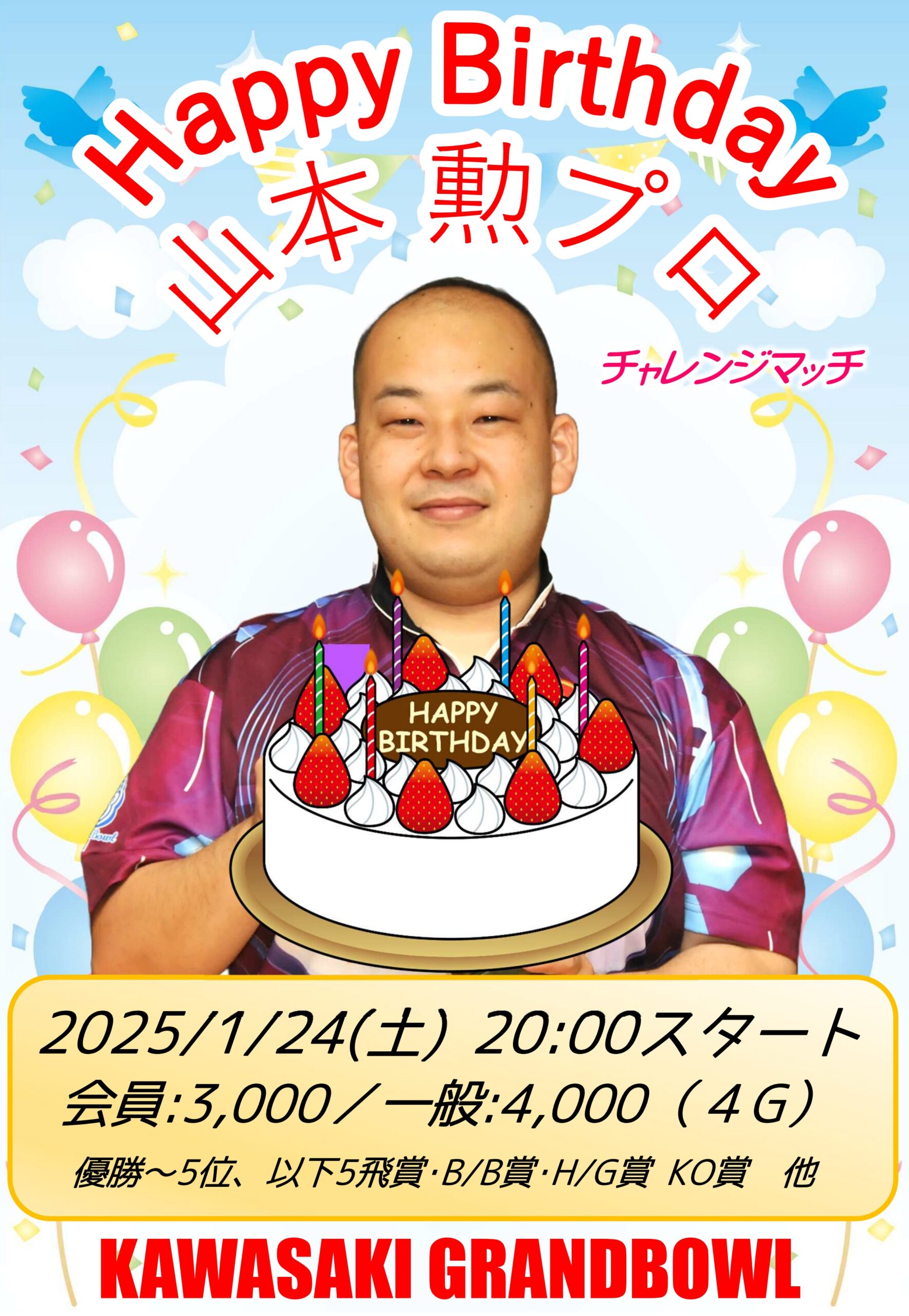 川崎グランドボウルを拠点に活動しております、ABS所属の山本勲プロは1月6日が誕生日!